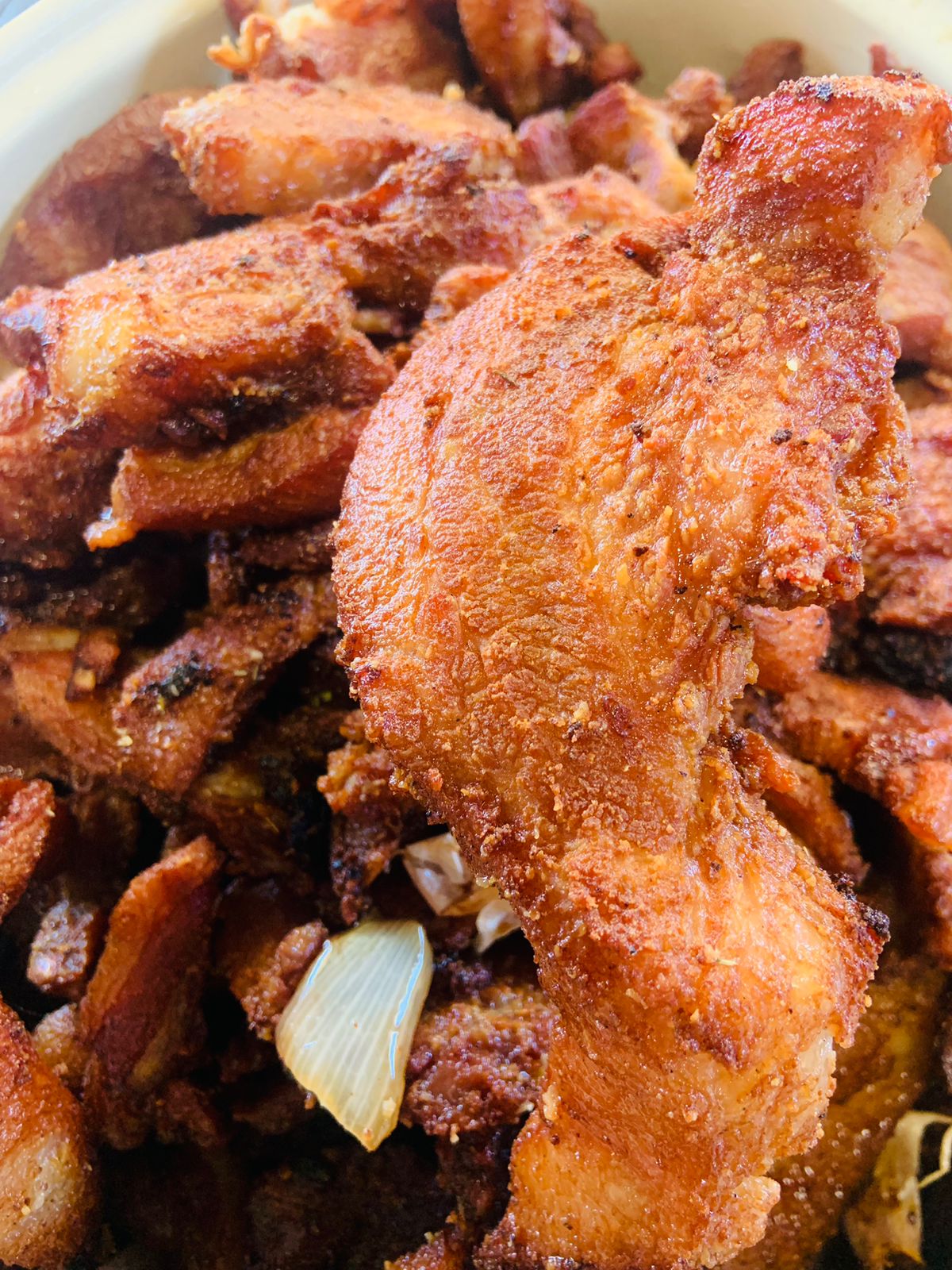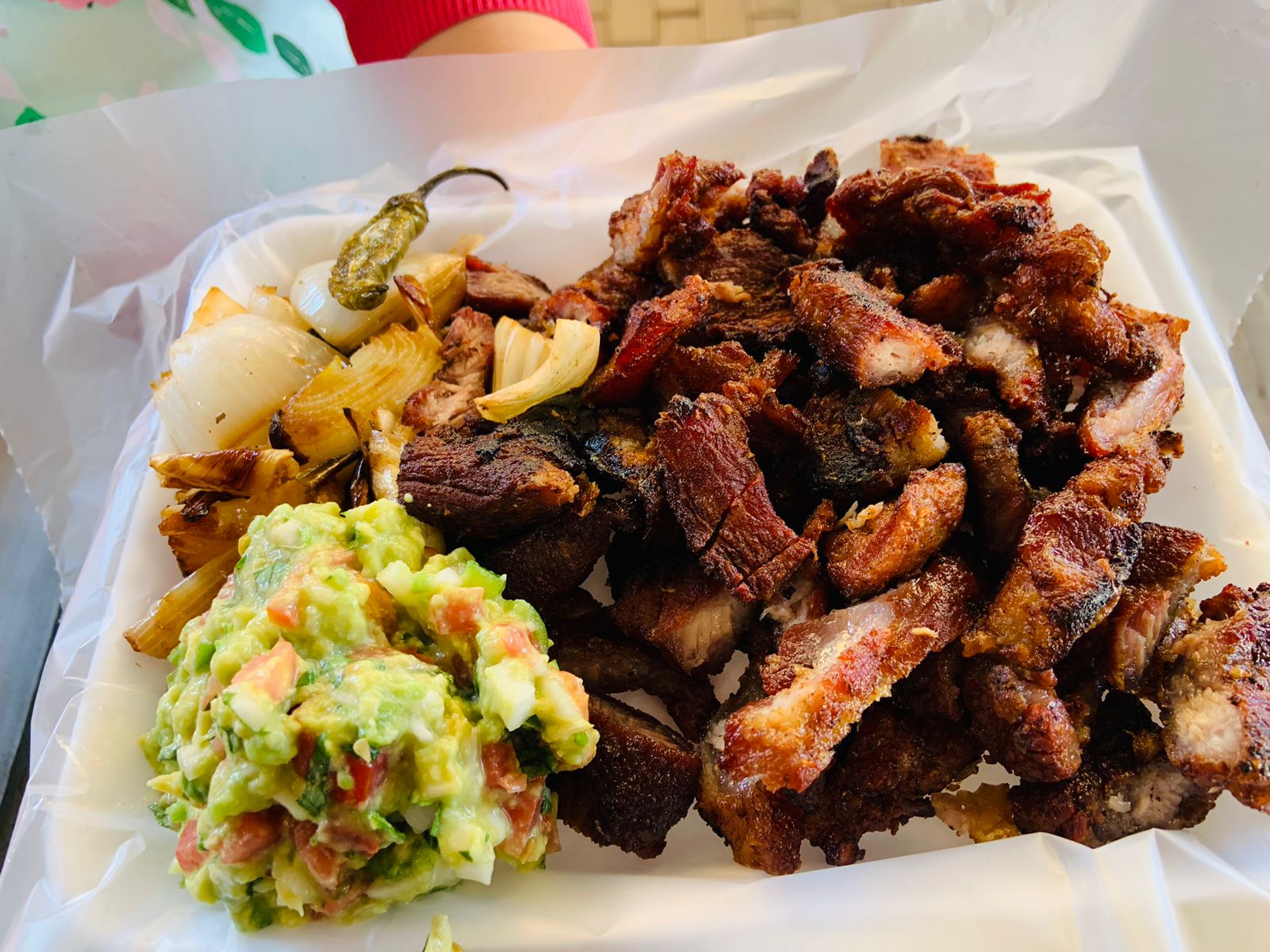 1/4 kilo de chicharrón de cachete. Incluye porción de guacamole