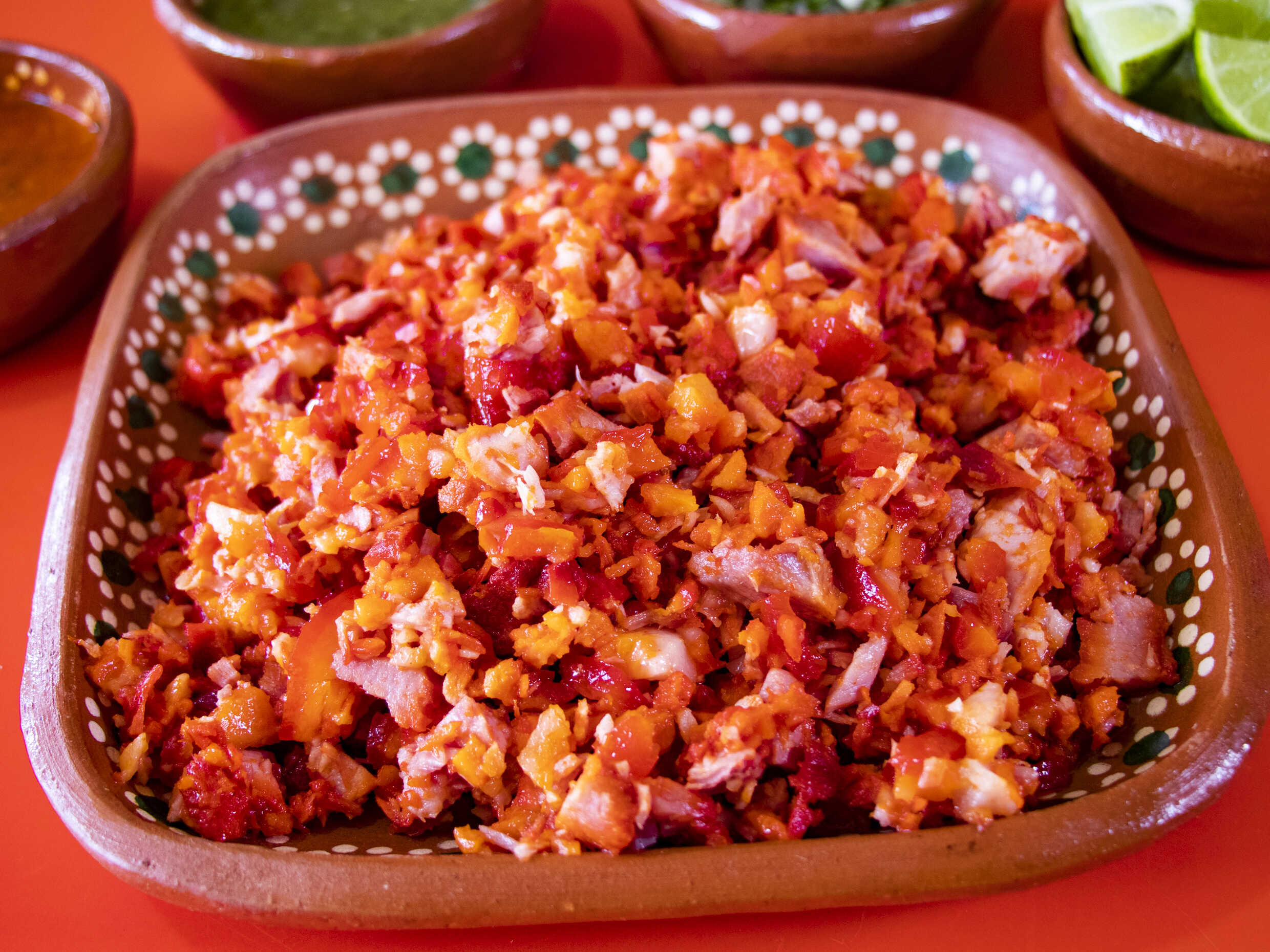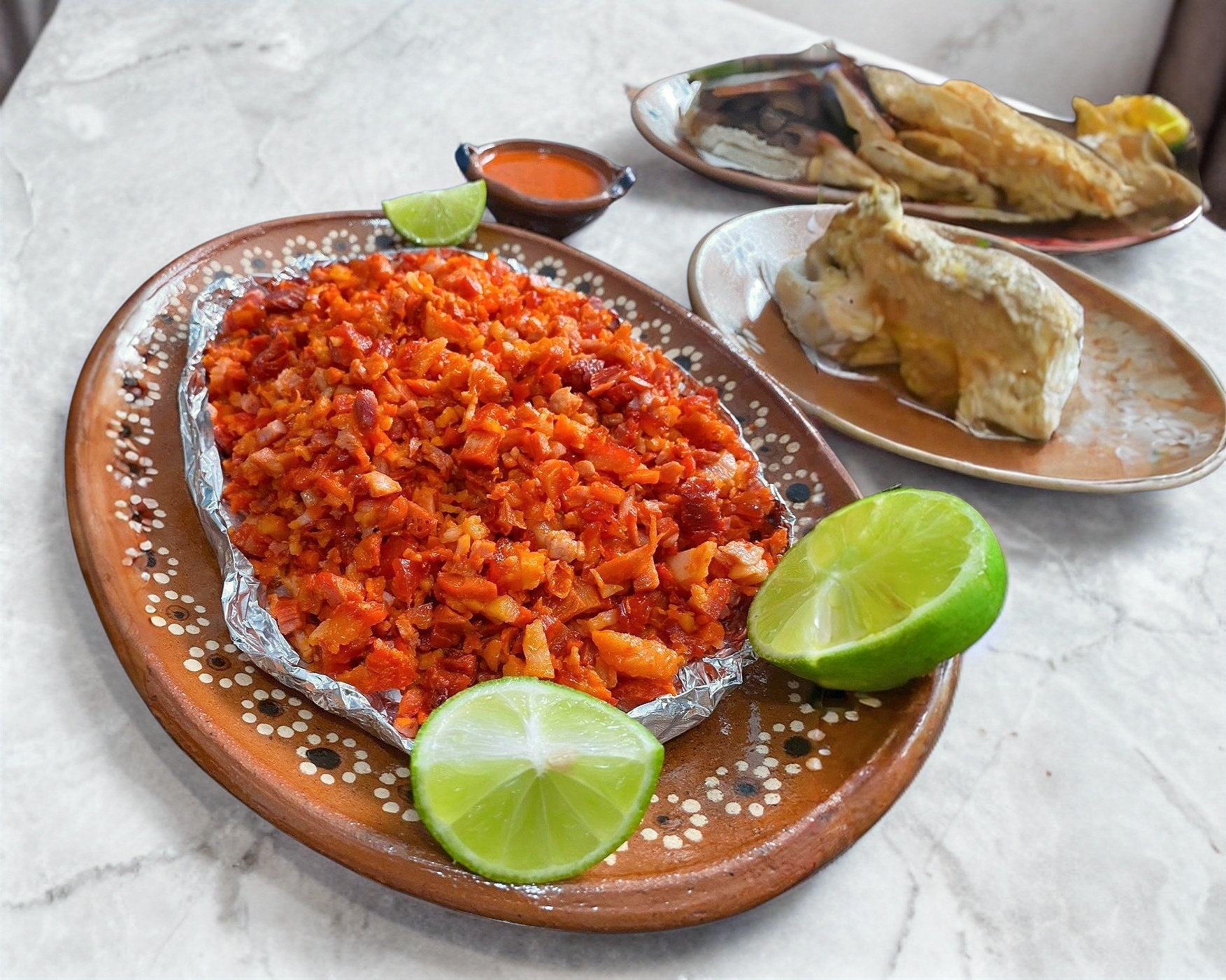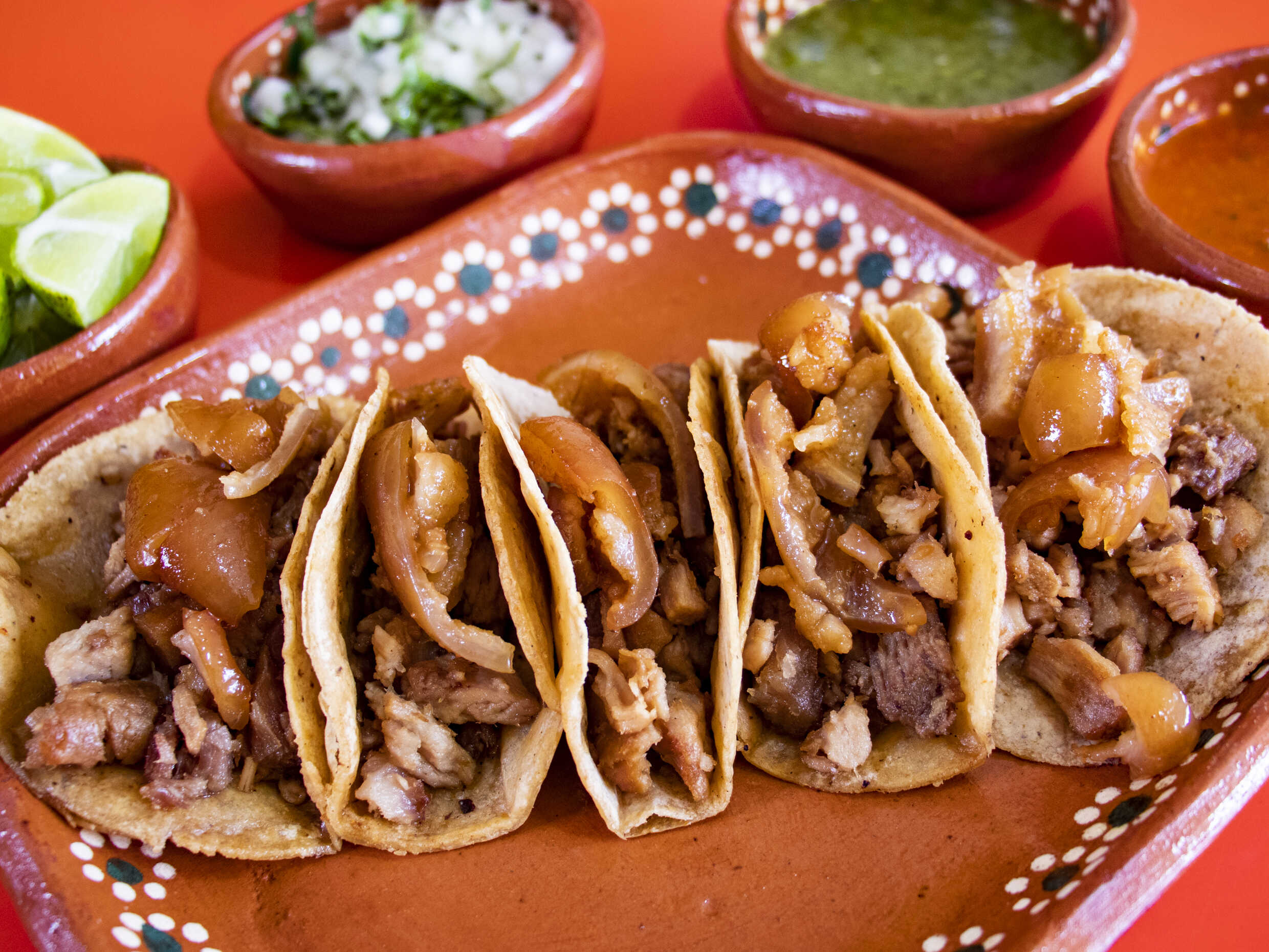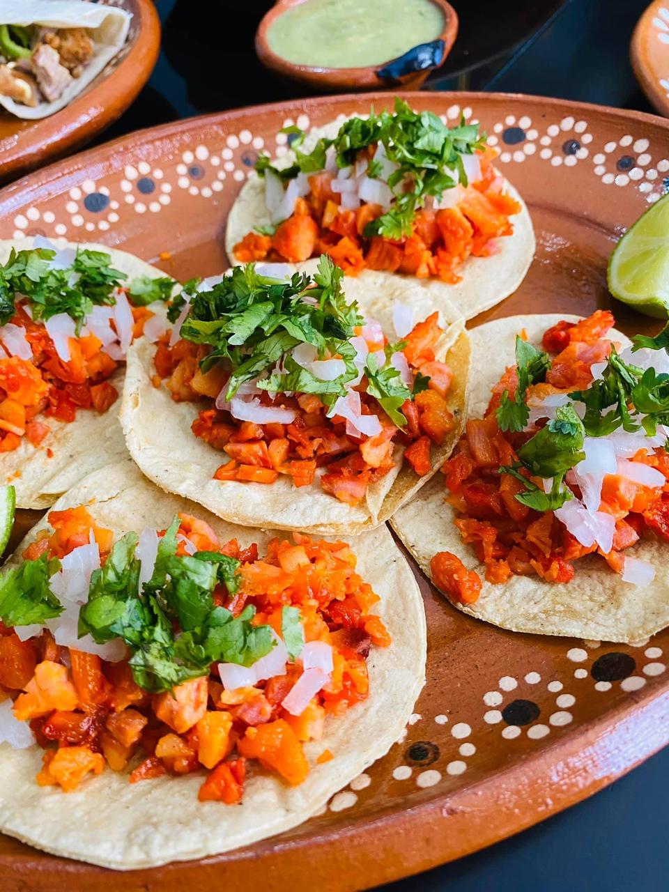 Incluye salsa roja, salsa verde, cilantro, cebolla, tortillas y limones.
