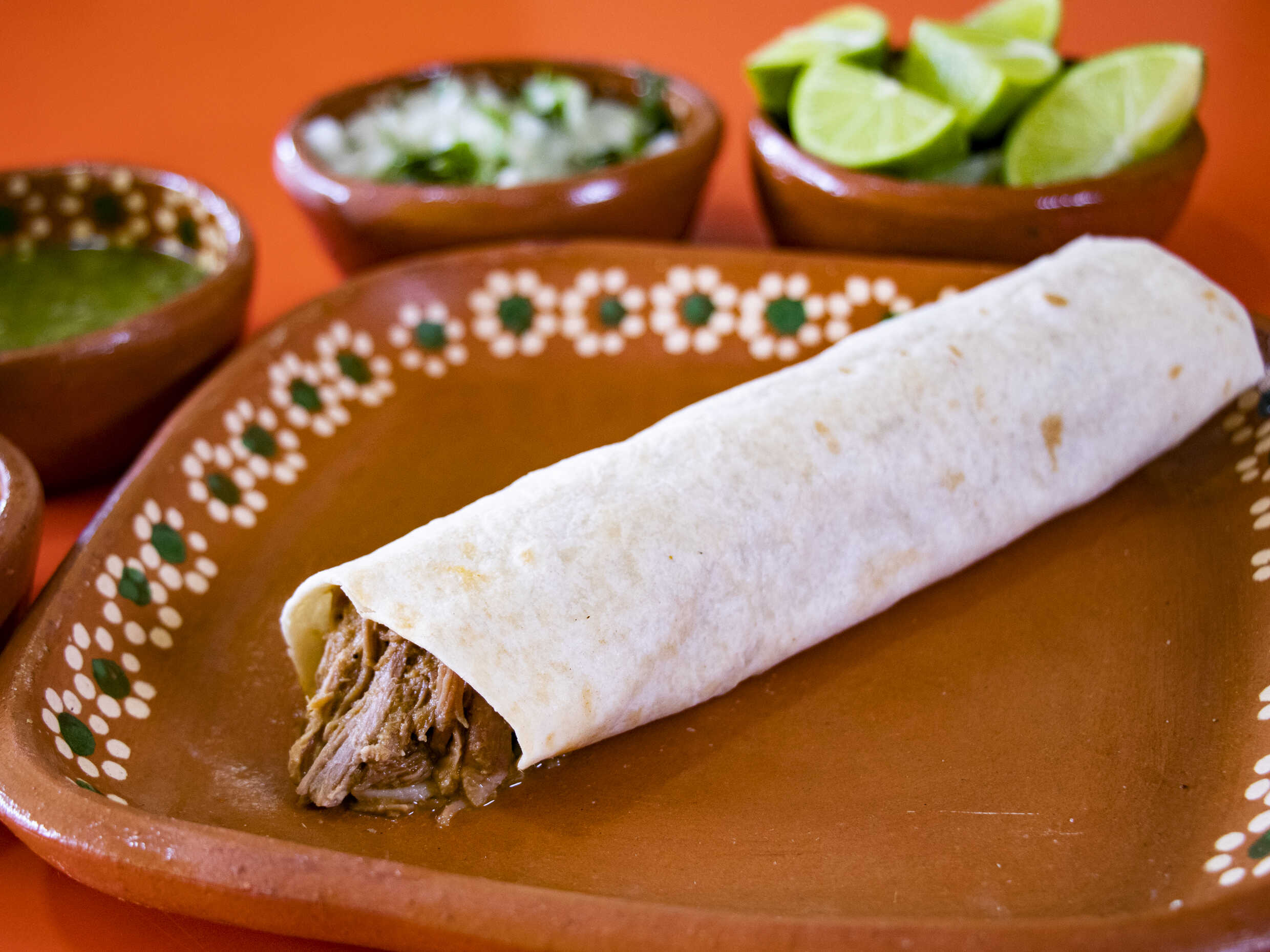 burro de carnitas c/cuero, incluye aguacate,salsa roja y verde, verdura y limón.