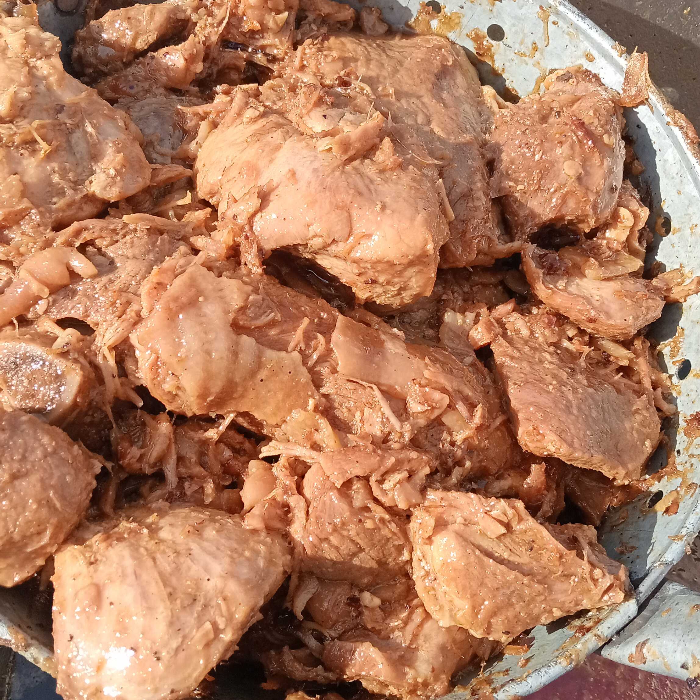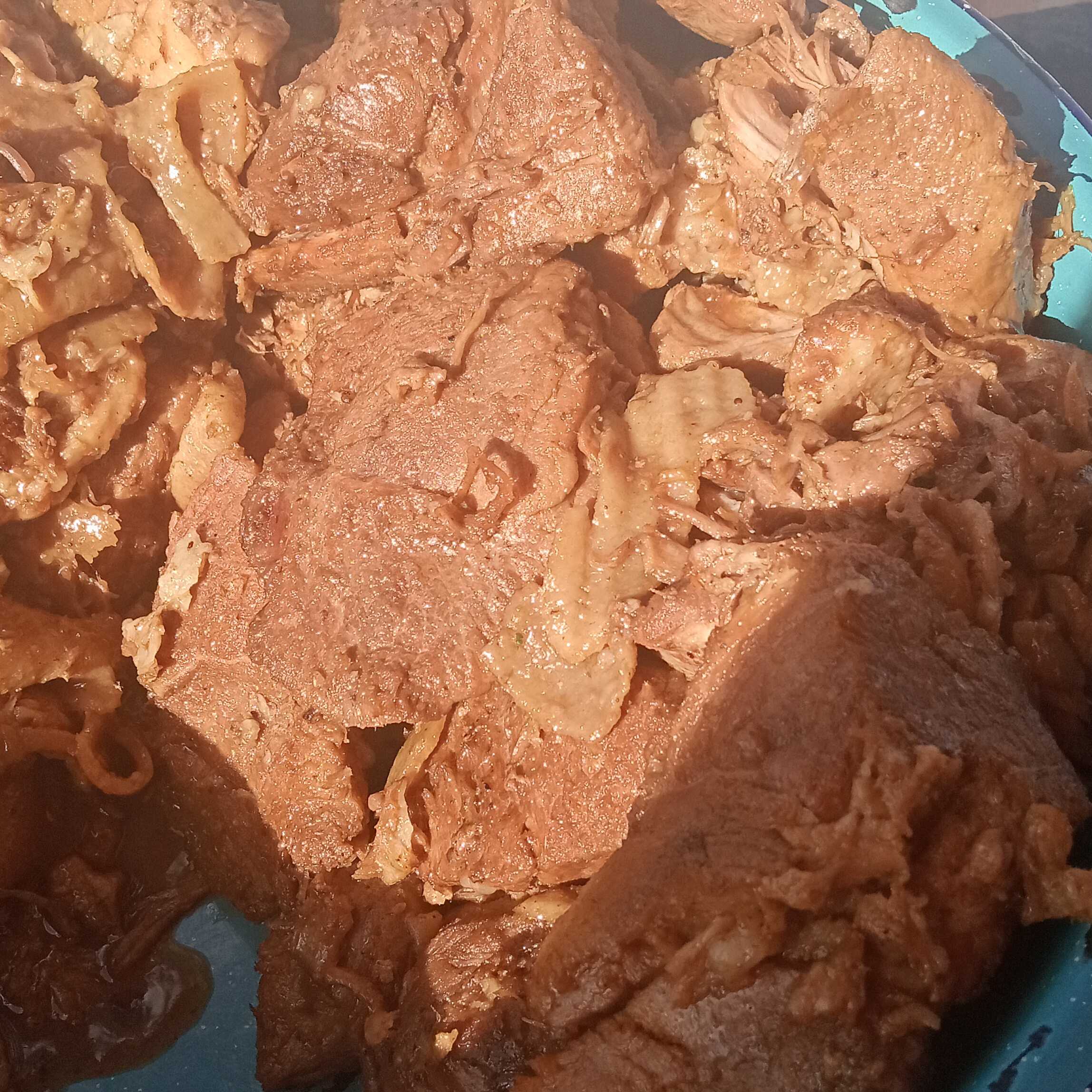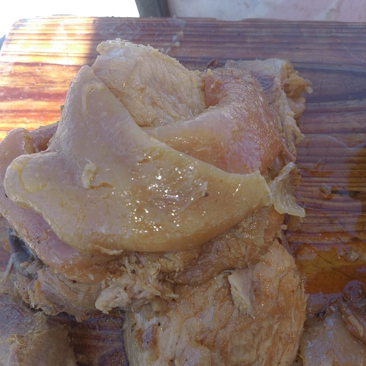 Carne y cuero cebolla cilantro salsa limón y mayonesa ymostaza