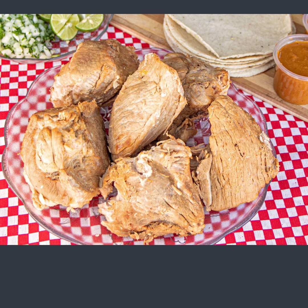 Cueritos acompañado de cebolla cilantro salsa y limón
