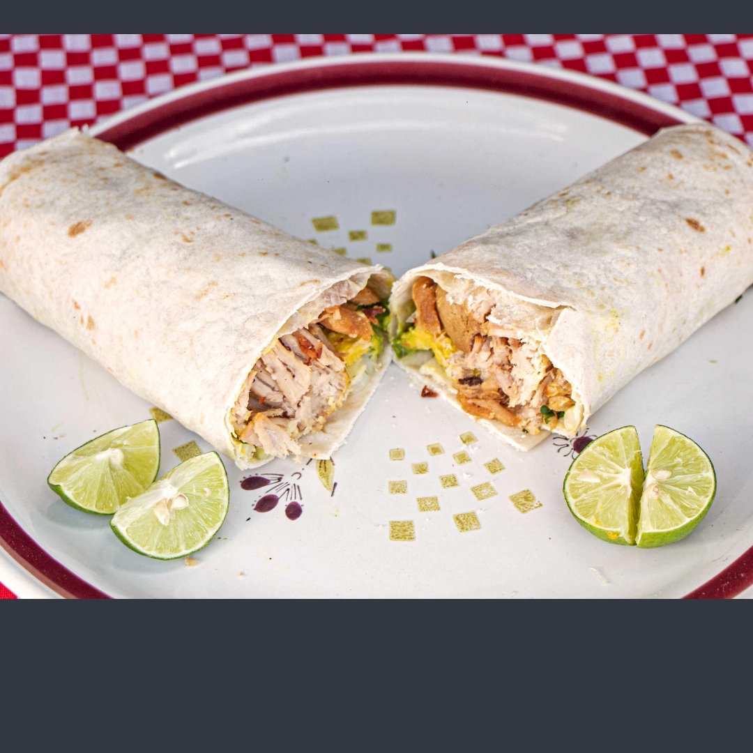 Carne y cuerito con verdura salsa limón en tortilla de h arina