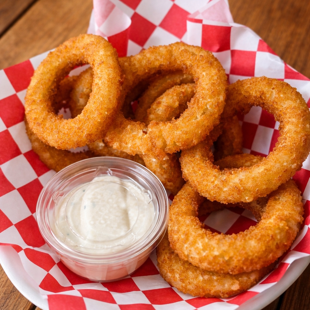 Aros de cebolla rebozados y fritos, dorados y crujientes. El complemento ideal para darle un toque crocante a tu orden.