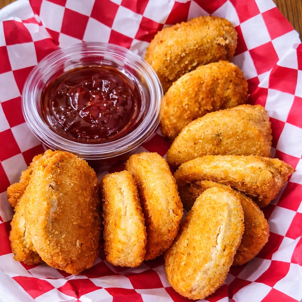 Suaves y jugosos nuggets de pollo con un empanizado dorado y crujiente. Un favorito de todos que nunca falla.