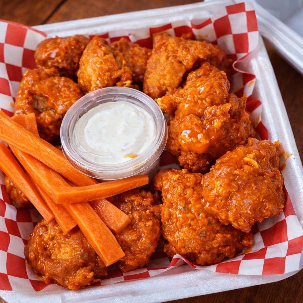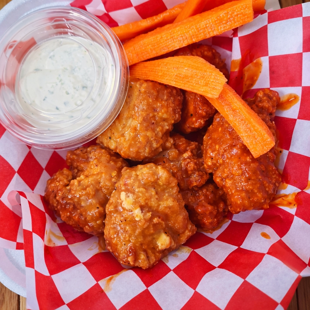 Un kilogramo de jugosos trozos de pechuga de pollo empanizados, crujientes y bañados en tu salsa favorita (BBQ, Buffalo, Mango Habanero, entre otras). Ideal para compartir en grande.