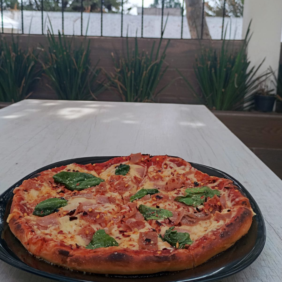 Queso gouda, jamón, espinaca, tomate y salsa especial de frutos rojos con chipotle.