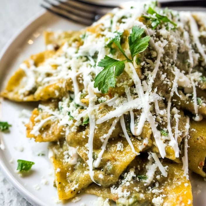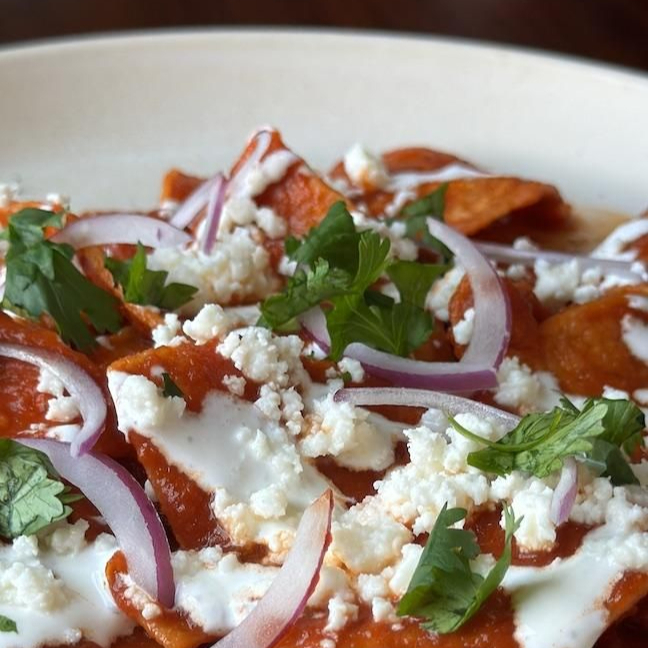 Deliciosos chilaquiles acompañados de ricos frijoles refritos