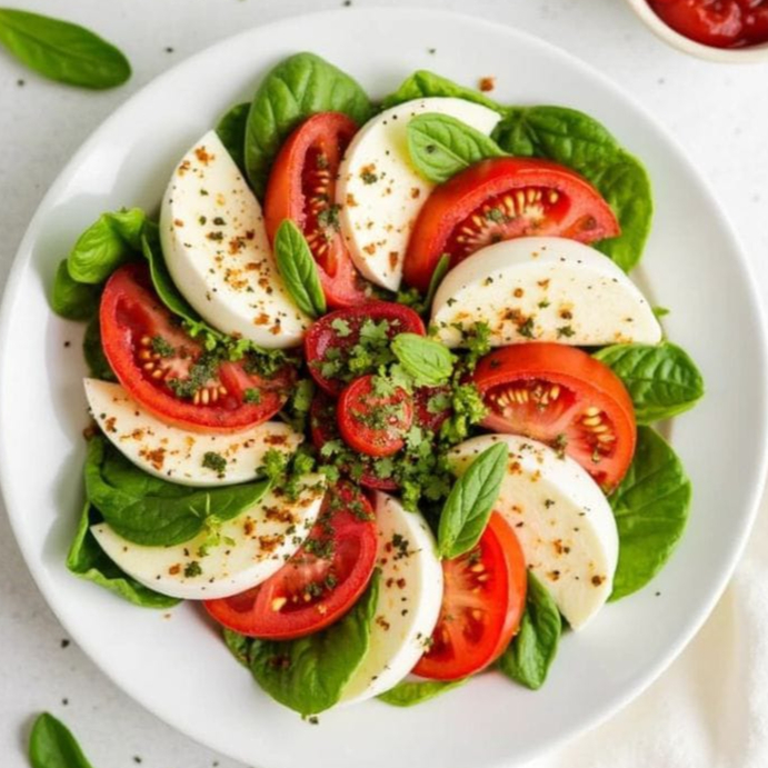 queso panela, tomate fresco, albahaca seca, espinaca y vinagreta.