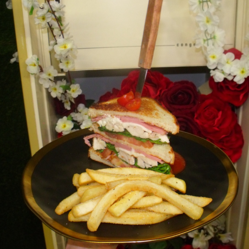 base de espinaca con tomate, crotones, pechuga de pollo, queso panela y vinagreta.