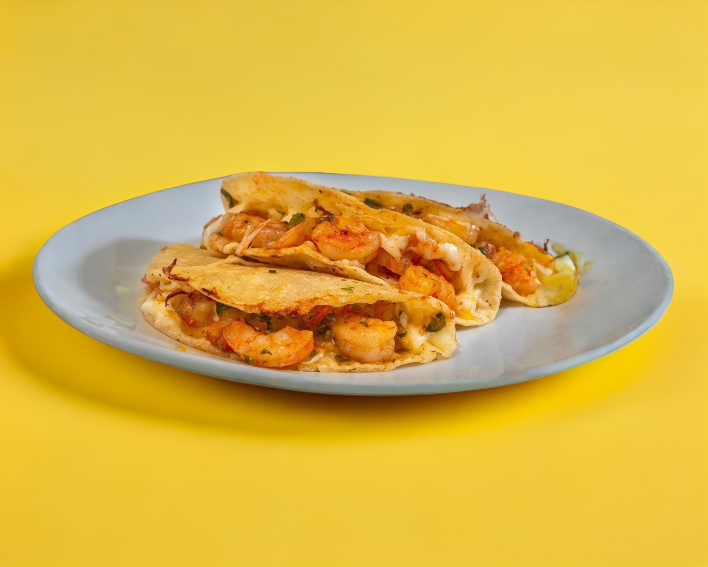 Orden de 3 quedasillas de camaron :tortilla de maiz con queso asadero ,camaron picado y salsa casera