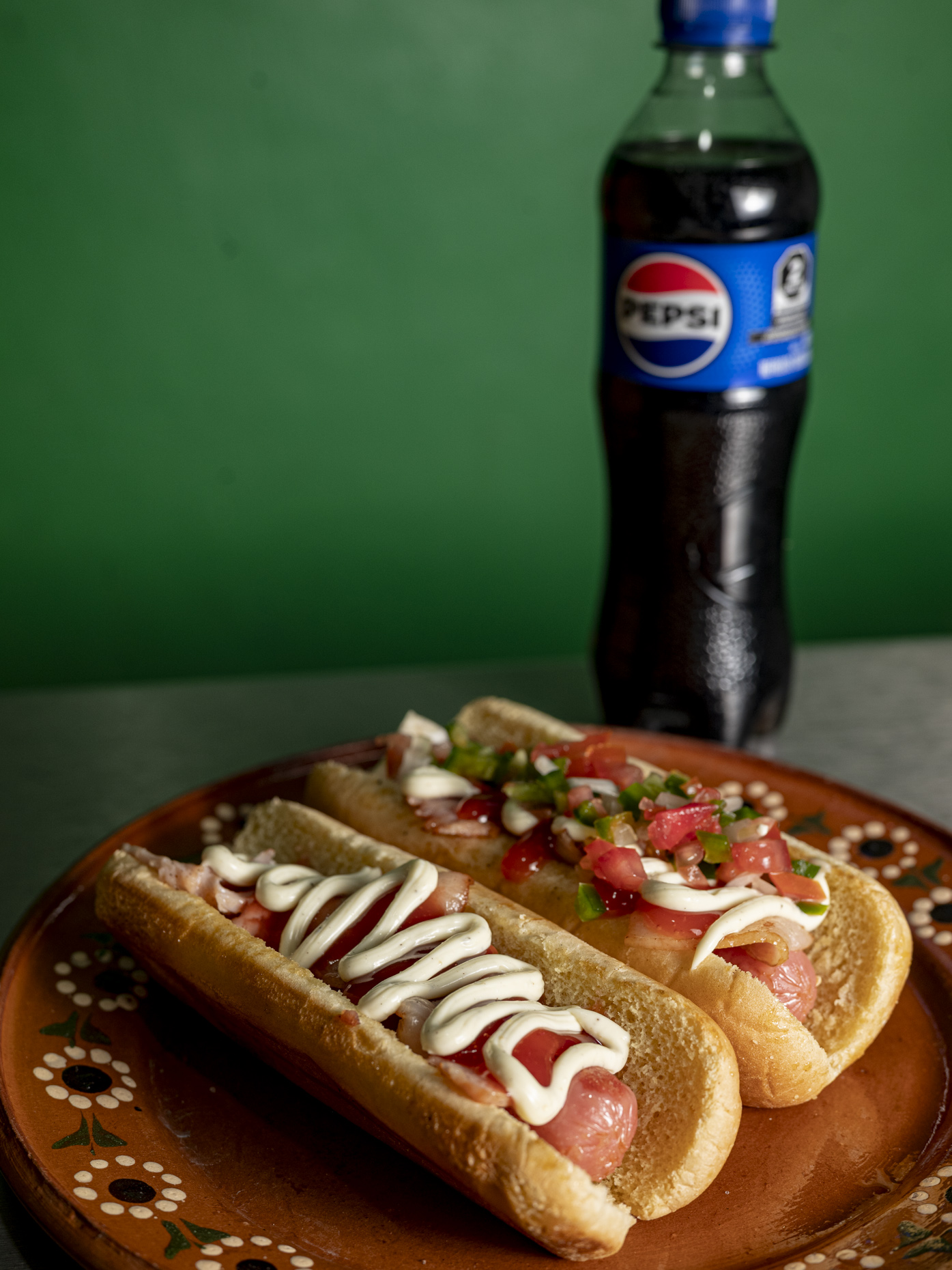 2 Hot dogs con tocino y refresco.