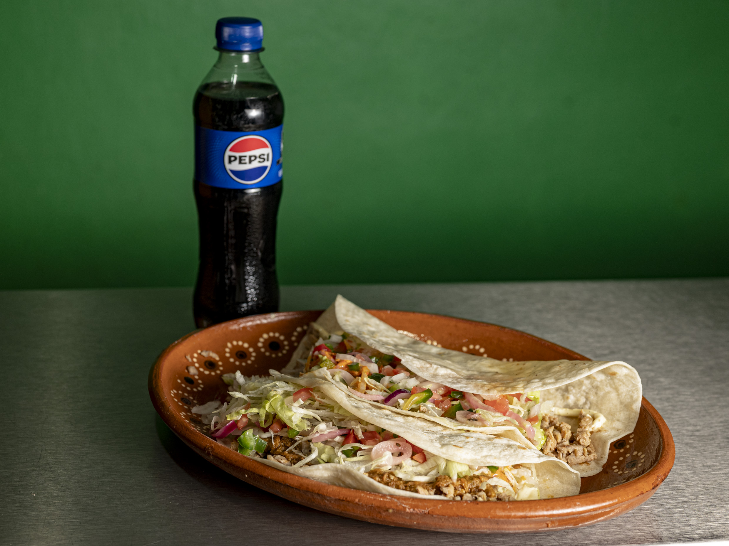 Dos burros, asada, pastor y refresco.