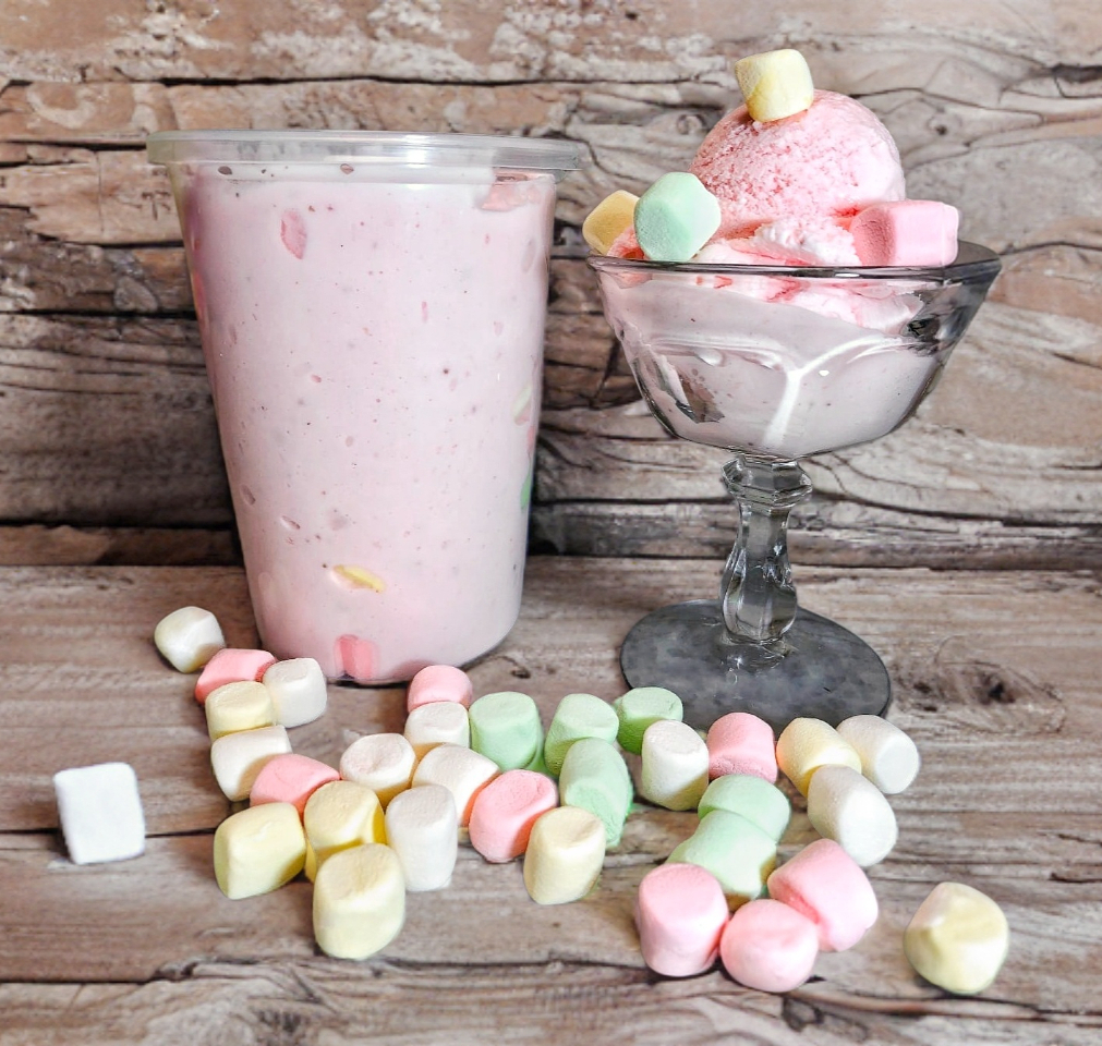 Deliciosa combinación de nieve de fresa con nuez y malvaviscos, muy delicioso!