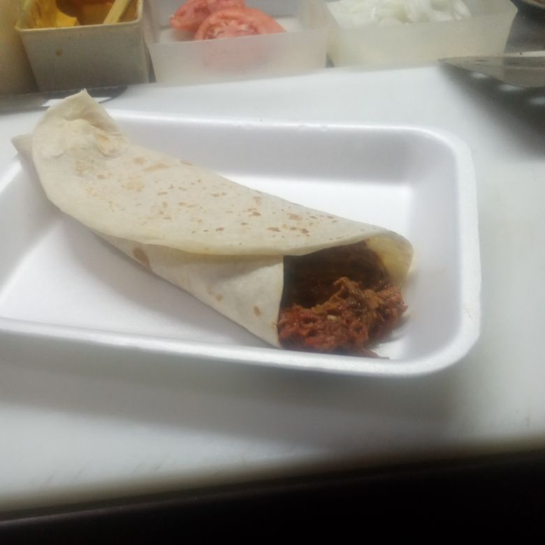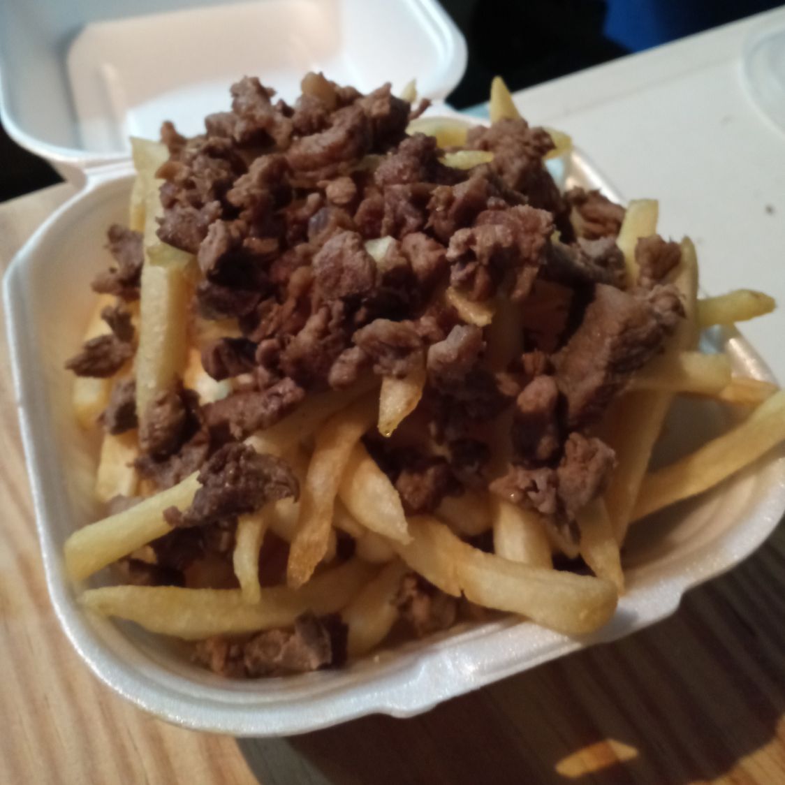 Carne asada, mayonesa,, catsup, rajas y queso para nachos.