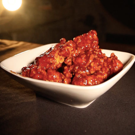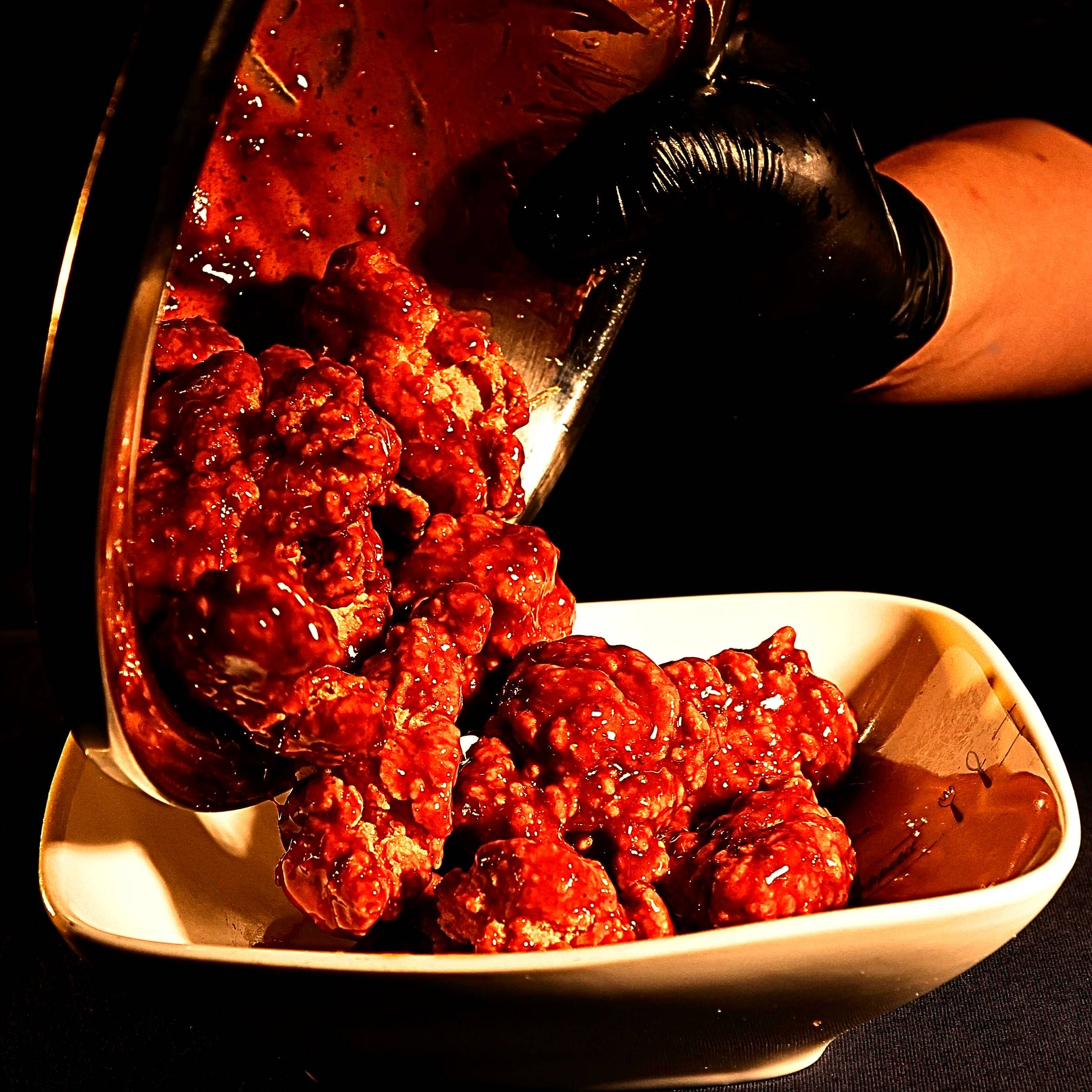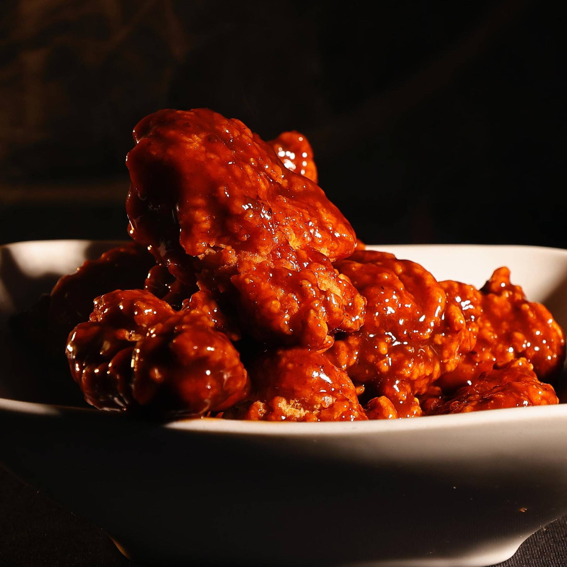 Crujientes trozos de pechuga de pollo empanizados y bañados en una de nuestras 12 salsas.