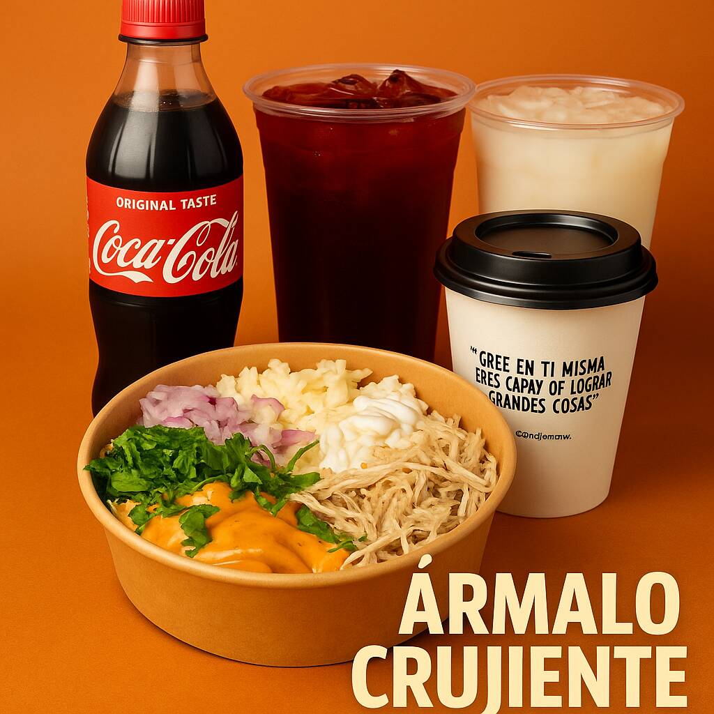 Armalo con todo como tengas tu antojo: La salsa, los topings, las proteinas, las bebidas de tu preferencia.