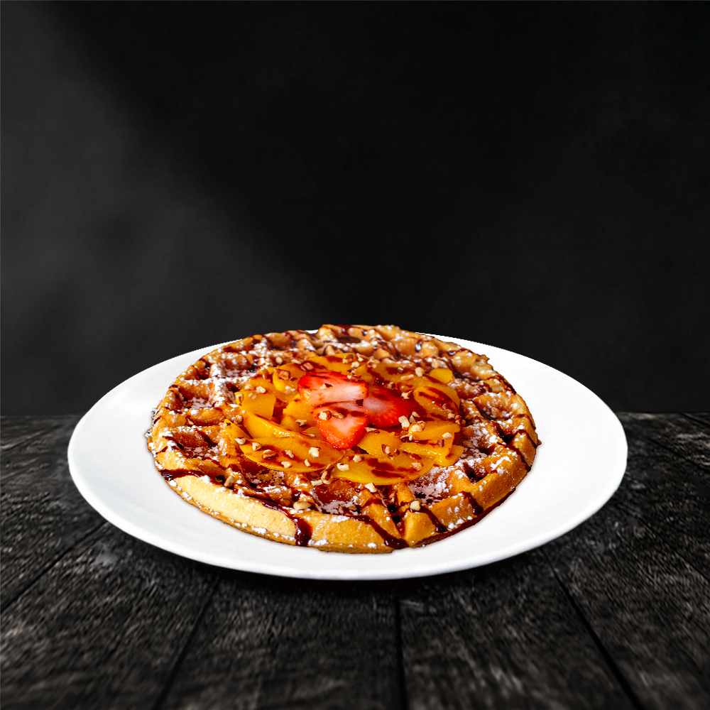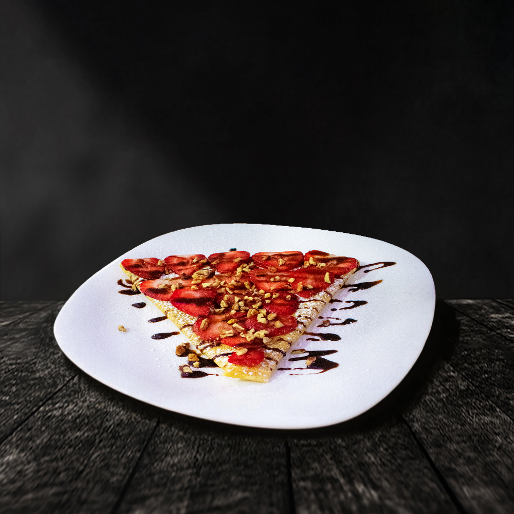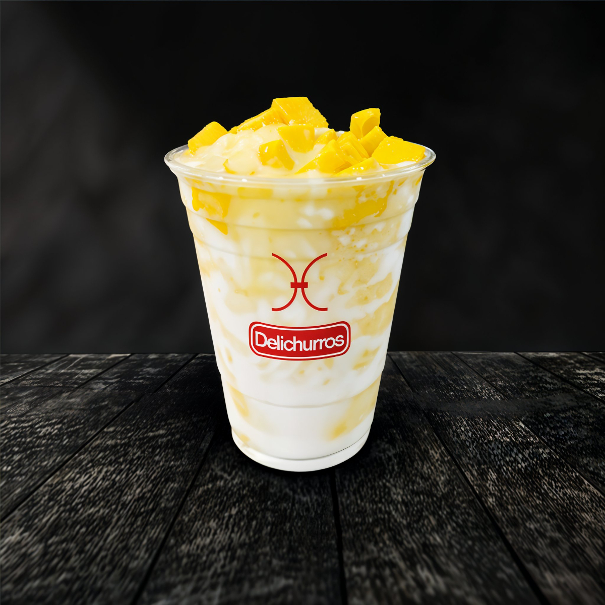 Zarzamora, fresa, leche condensada, chocolate, cajeta, durazno y nutella. Adicionada con trozos de fruta.
