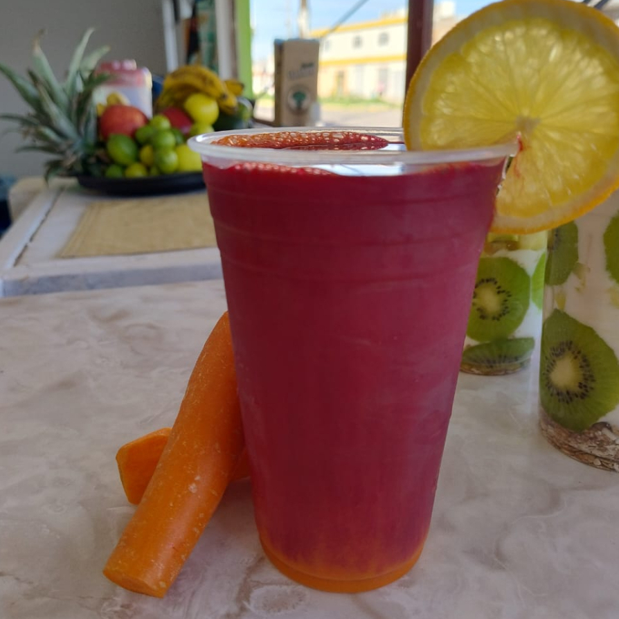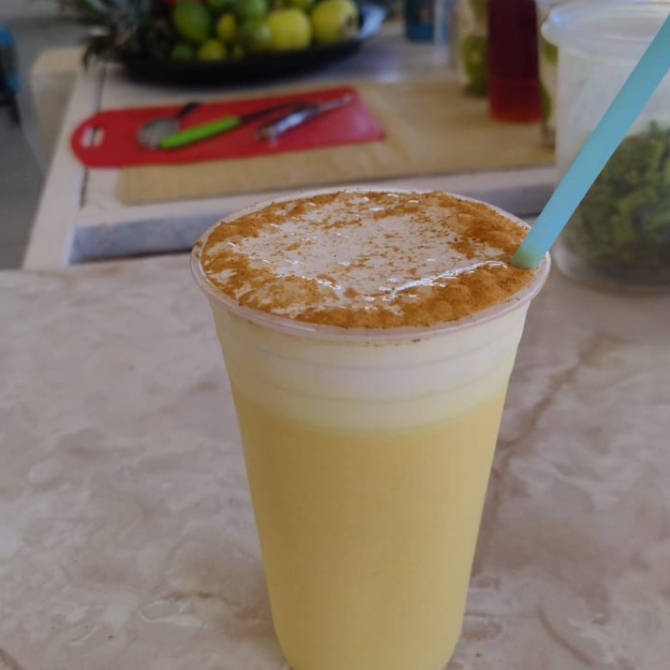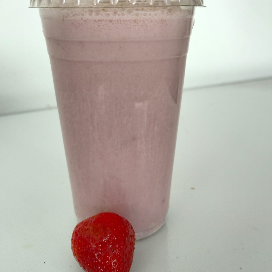 Licuado de fresa y avena, espolvoreado de canela en polvo