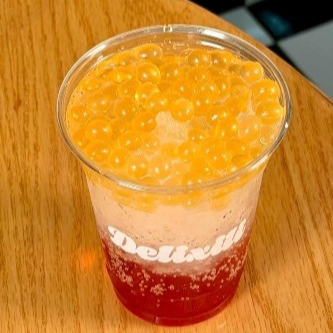 Bebida refrescante gasificada con sabor frutal. Incluye perlas explosivas.