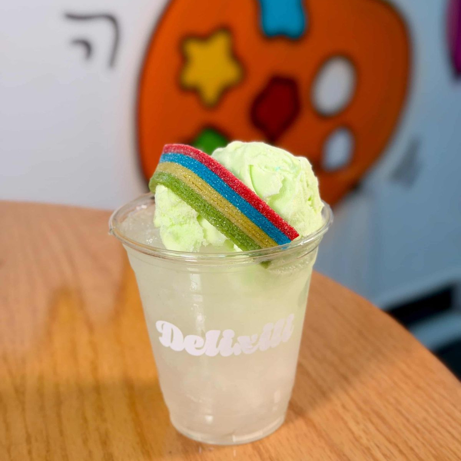 Bebida sabor limón con una bola de nieve encima.