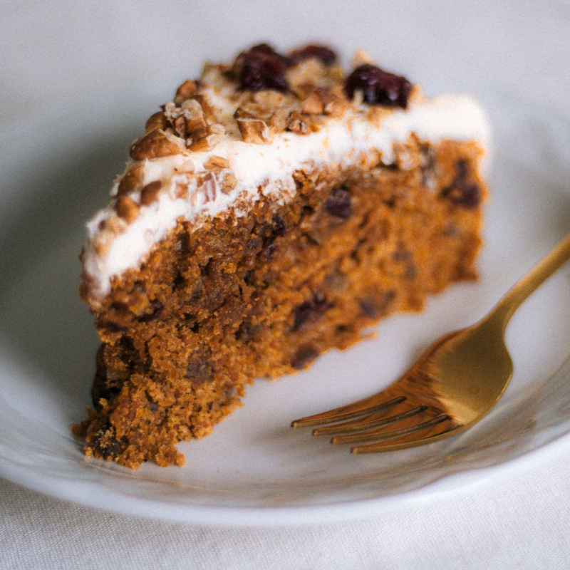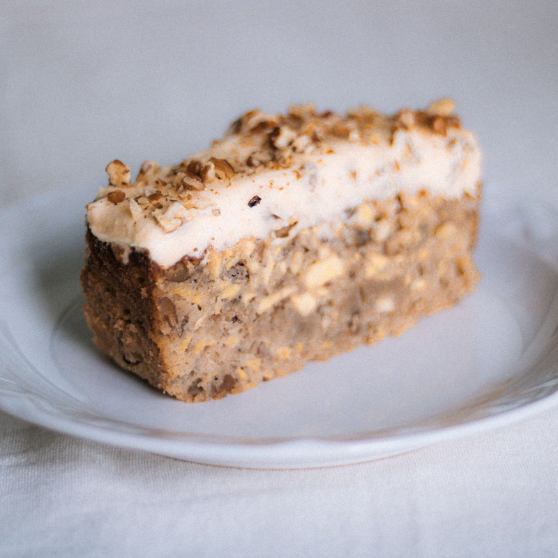 REBANADA DE PASTEL DE ZANAHORIA, DELICIOSA.