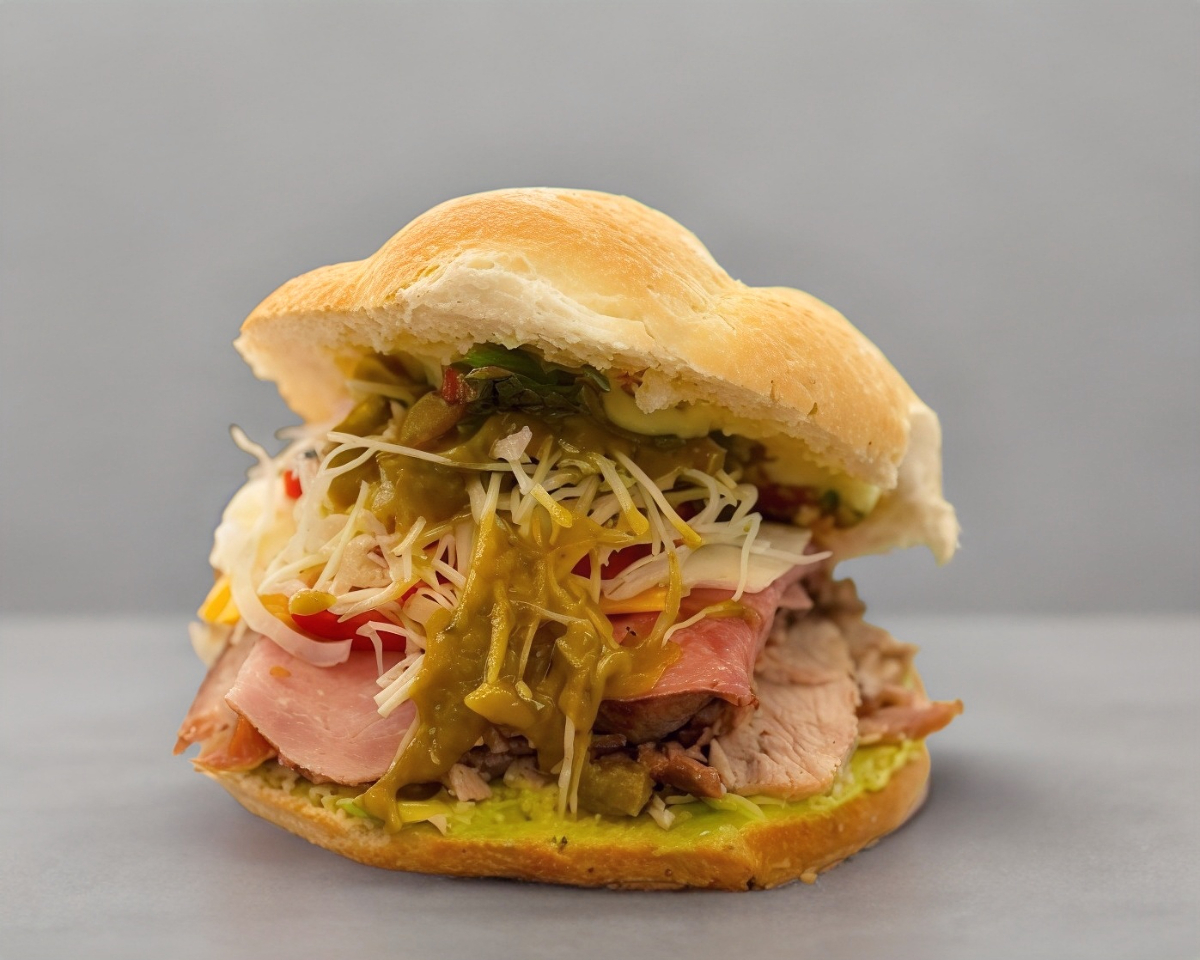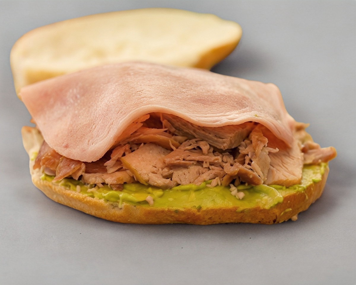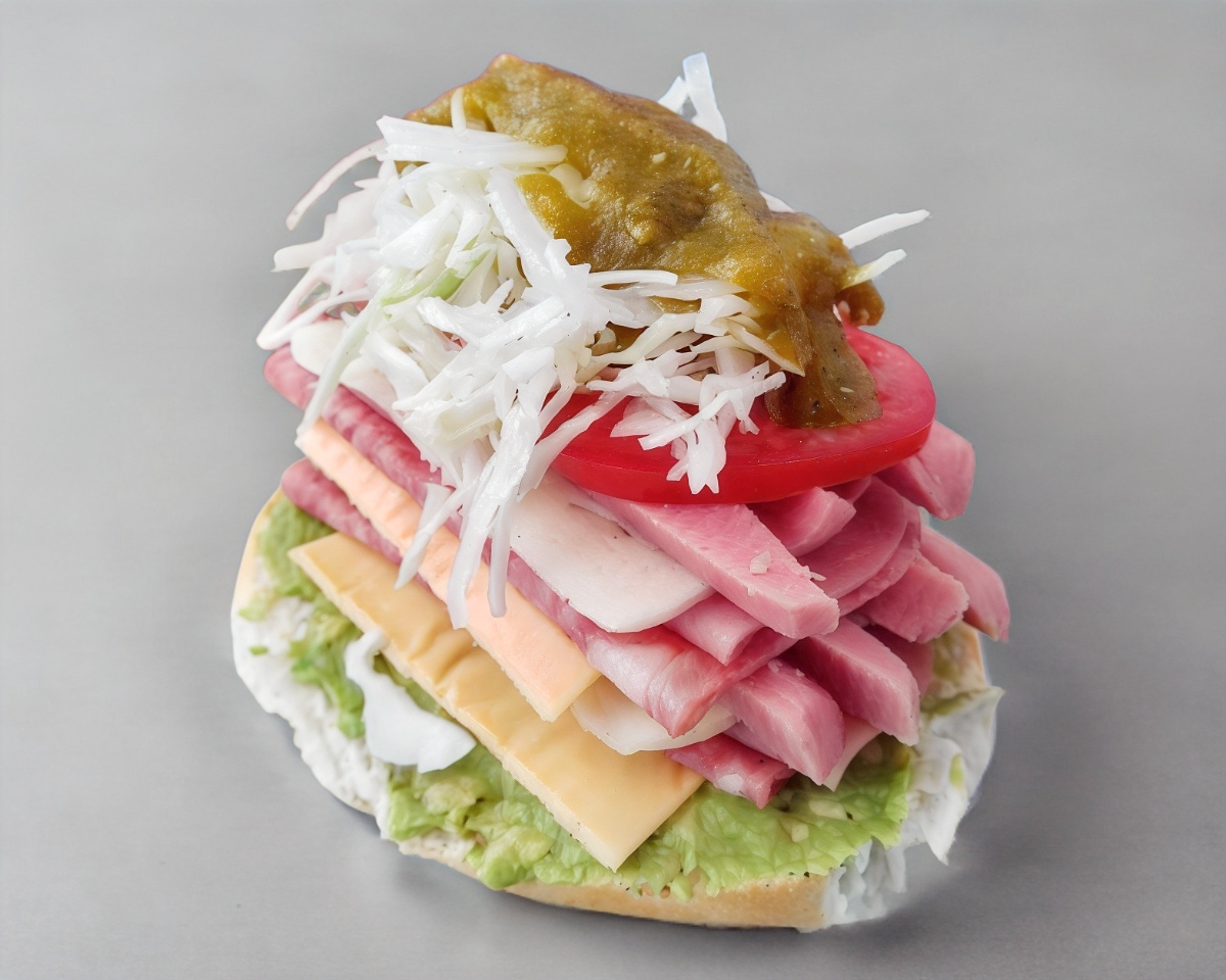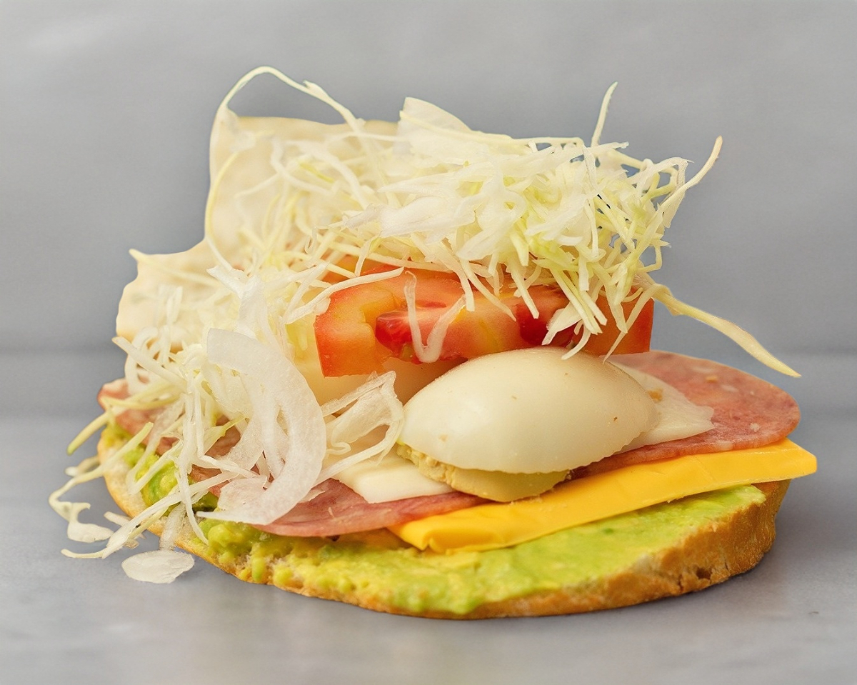 : Pierna con aguacate, Queso blanco, queso amarillo, queso de puerco y jamón.