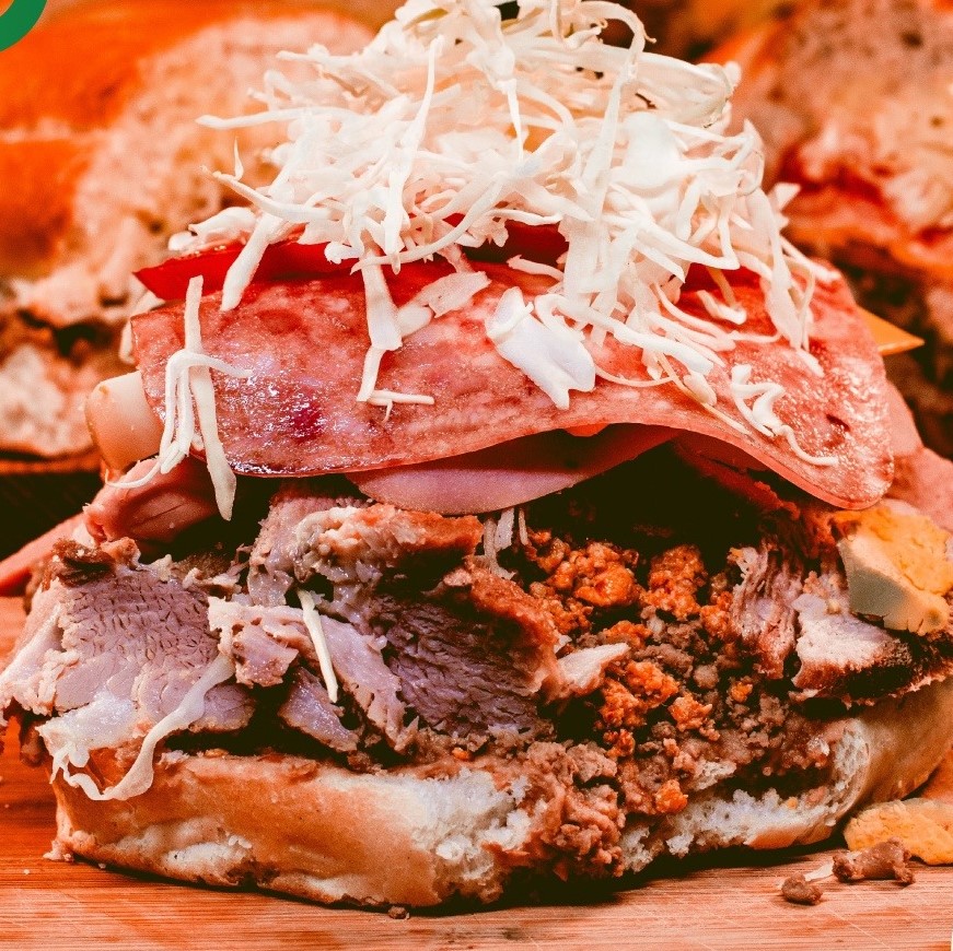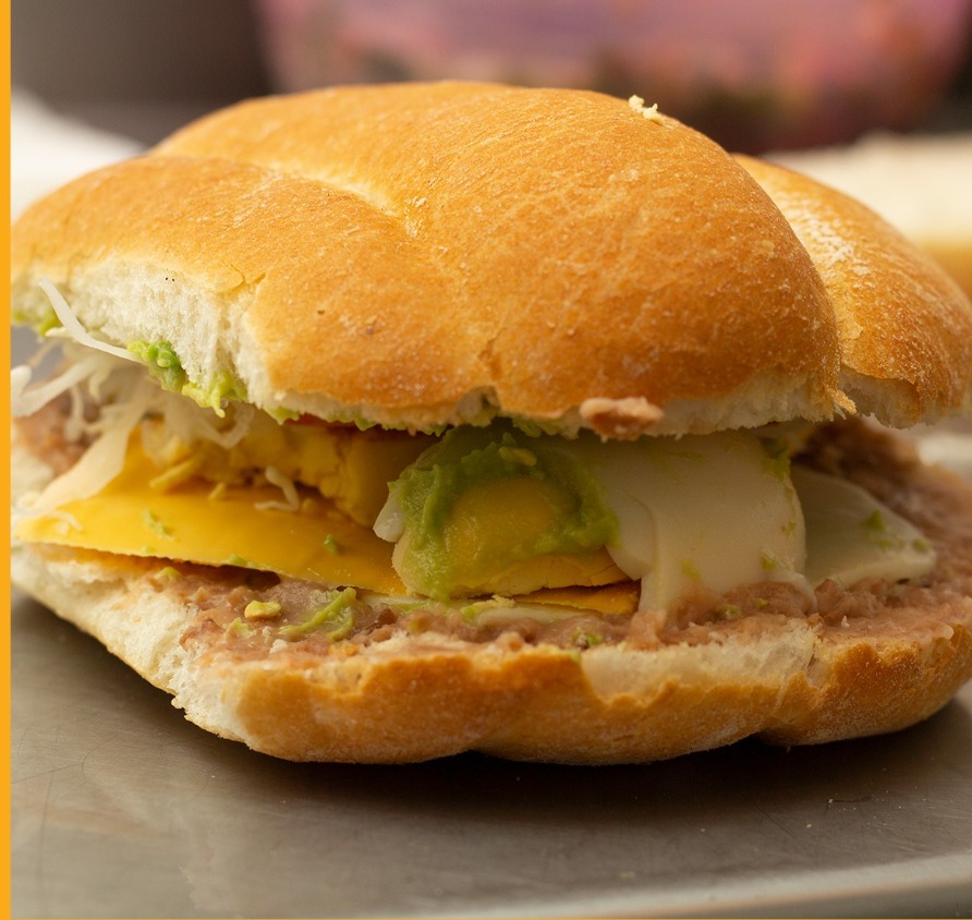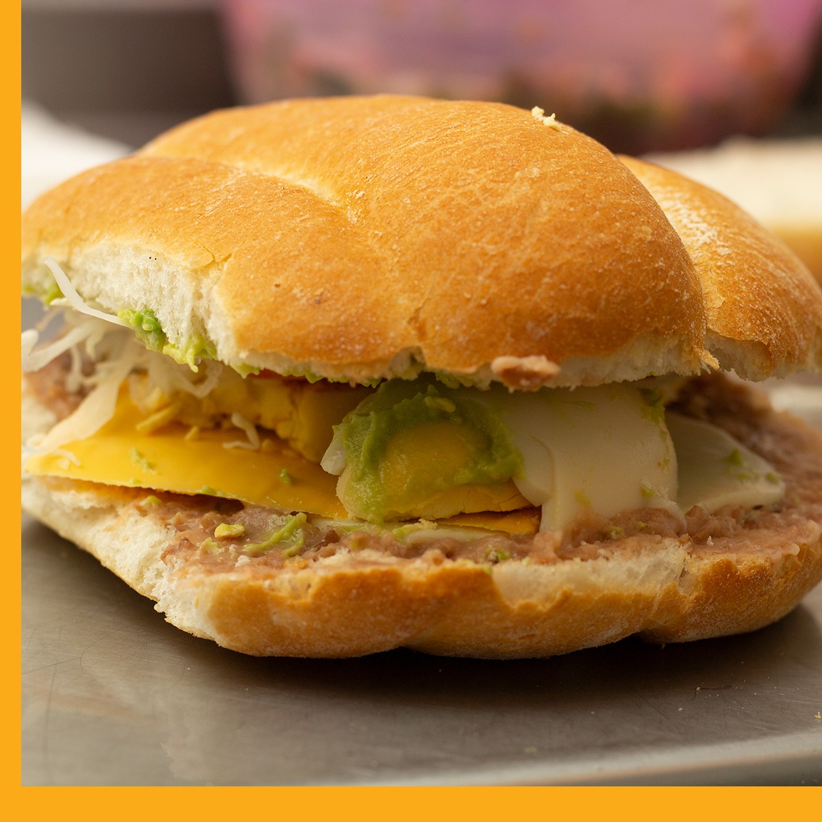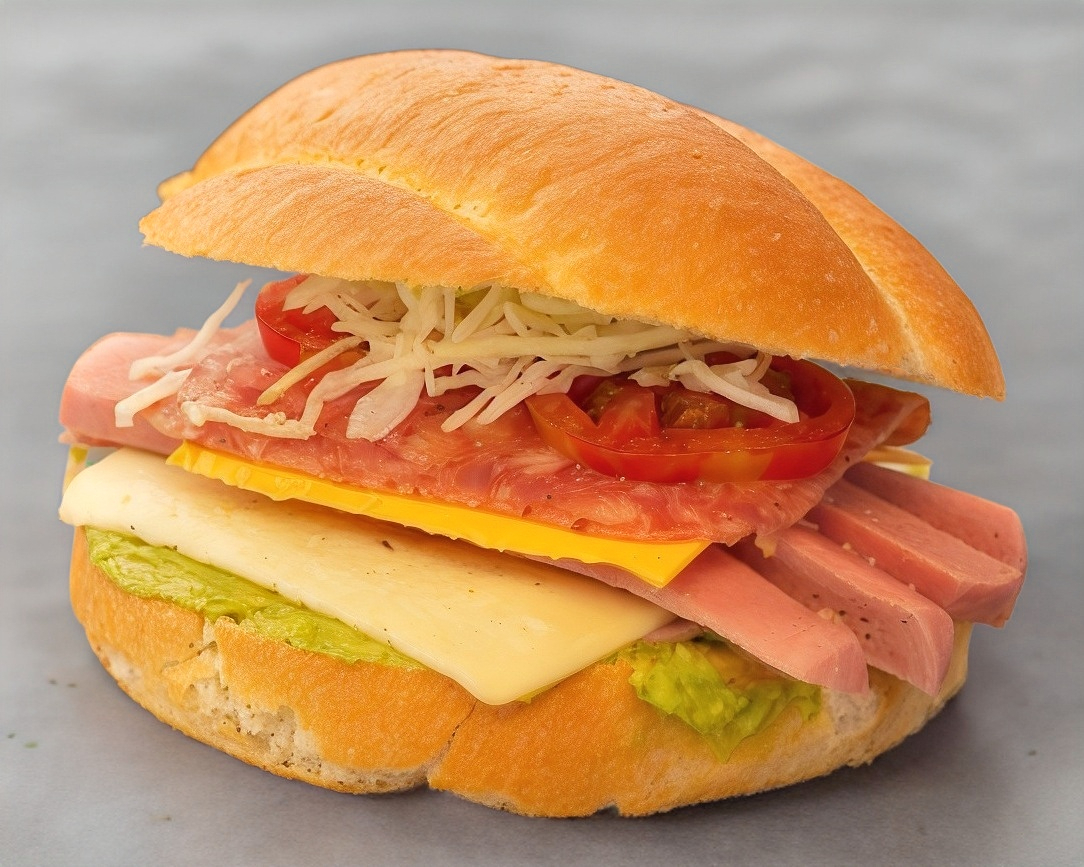 : Pierna con aguacate, Queso blanco, queso amarillo, queso de puerco y jamón.