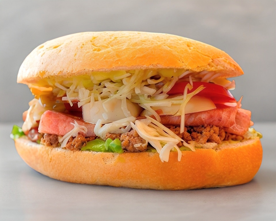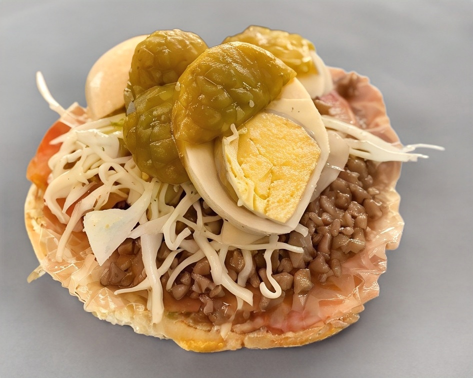 Doble rebanada de queso blanco, queso amarillo, queso de puerco, jamón y salchicha.