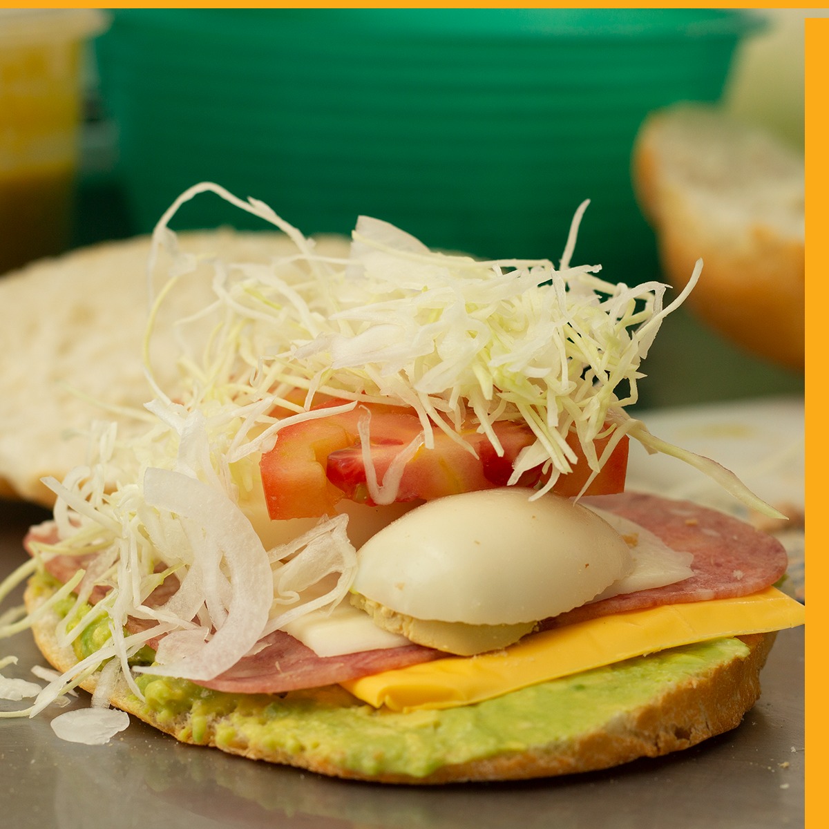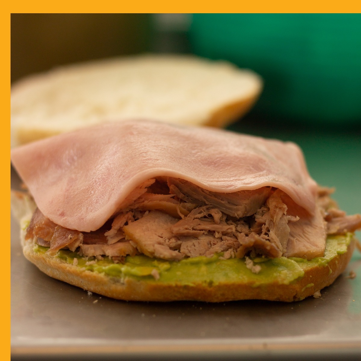 Pierna con aguacate, Queso blanco, queso amarillo, queso de puerco y jamón.