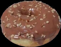 Dona cubierta con glaseado de Nutella, con trozos de nuez, decorada con un Ferrero Rocher y líneas de glaseado de chocolate.