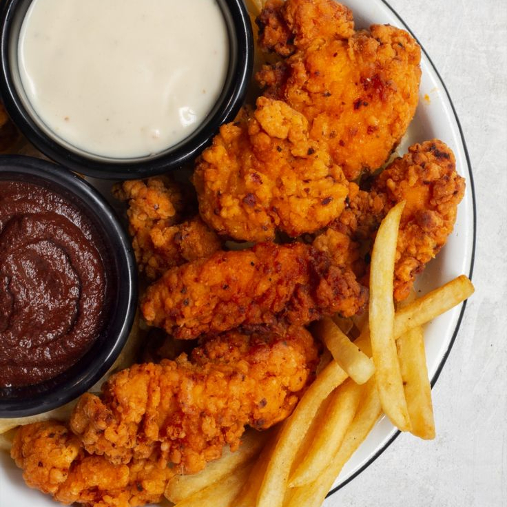 Paquete de 450gr de Boneless (15 pz aprox) bañados en salsa de su elección, acompañado de 200gr de papas