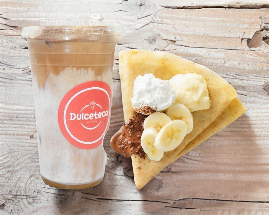 Crepa de banana nutella y cafe Caramel macchiato 12 onz
