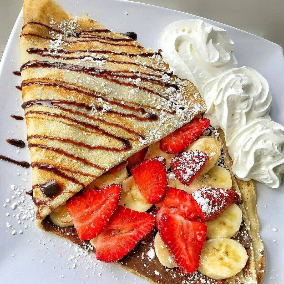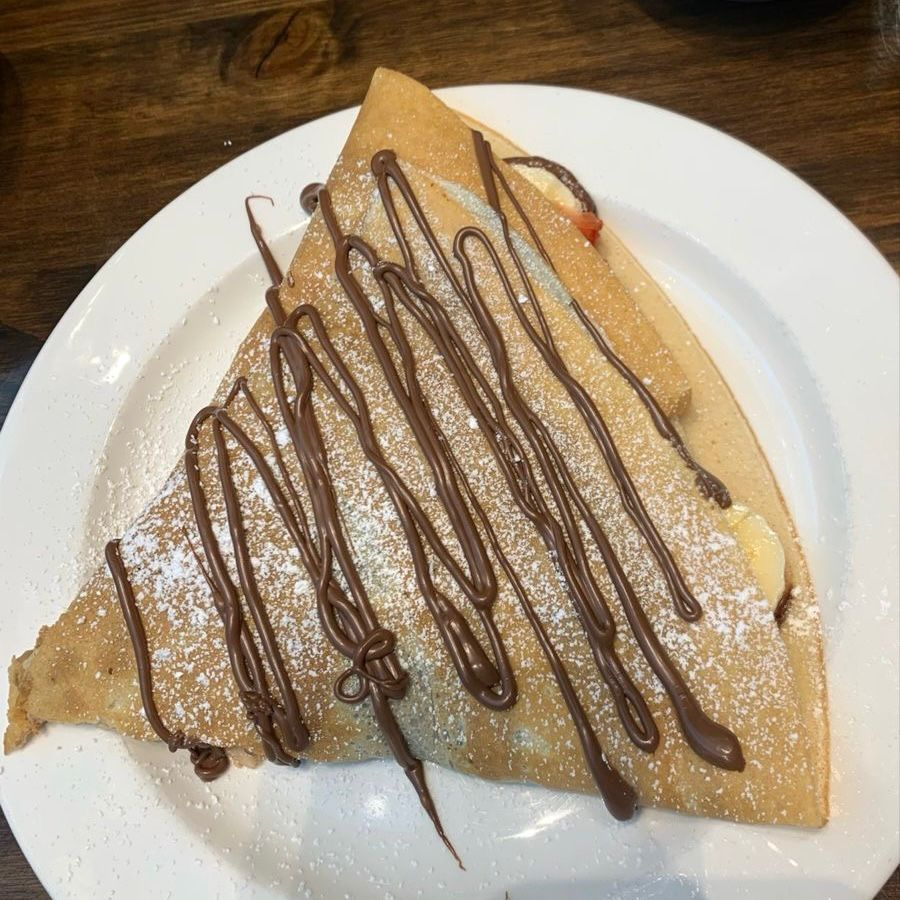 Crepa rellena de nutella, banana, decorado con mas nutella