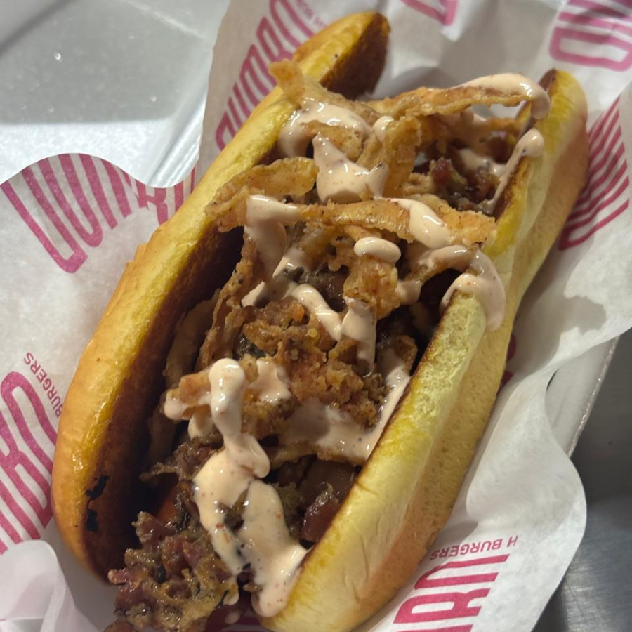 Pan de papa, salchicha de carne de res, queso blanco, tocino ahumado, cebolla crispy y aderezo secreto o chipotle.