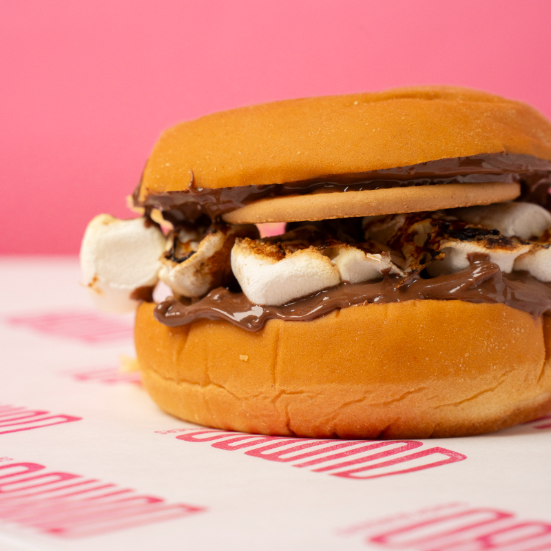 Slider con Nutella, bombón derretido y galleta.