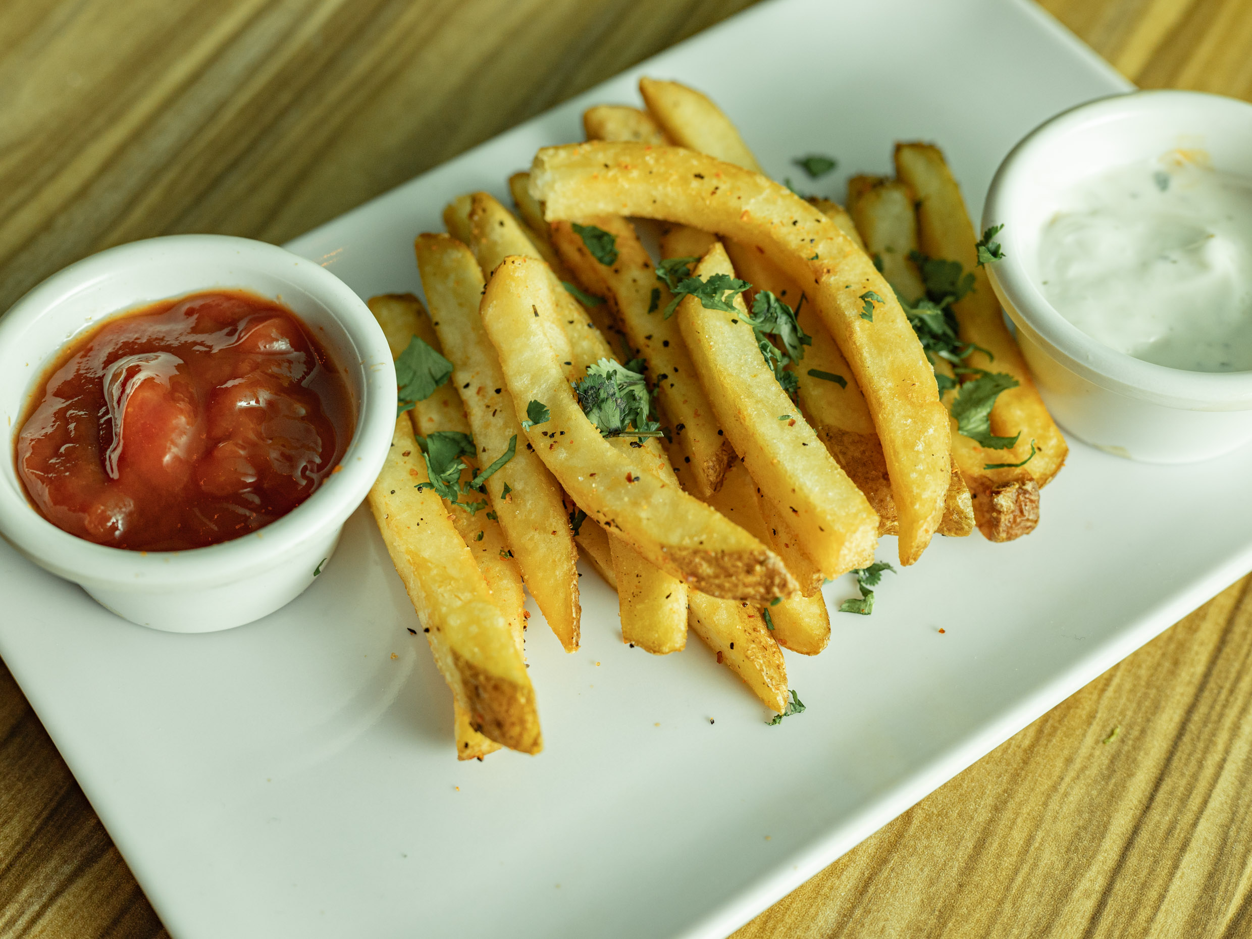 250 g de papas gajo acompañadas de dip ranch.