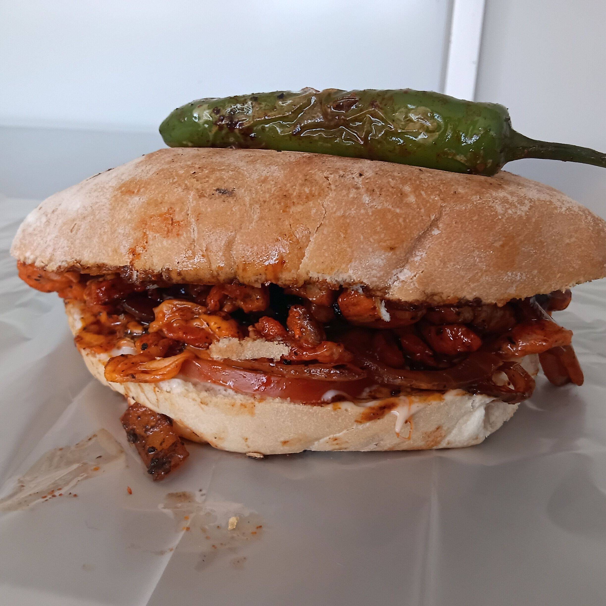 Burro relleno de nuestra deliciosa carne de cerdo adobada. Un poco de picante y mucho sabor.
