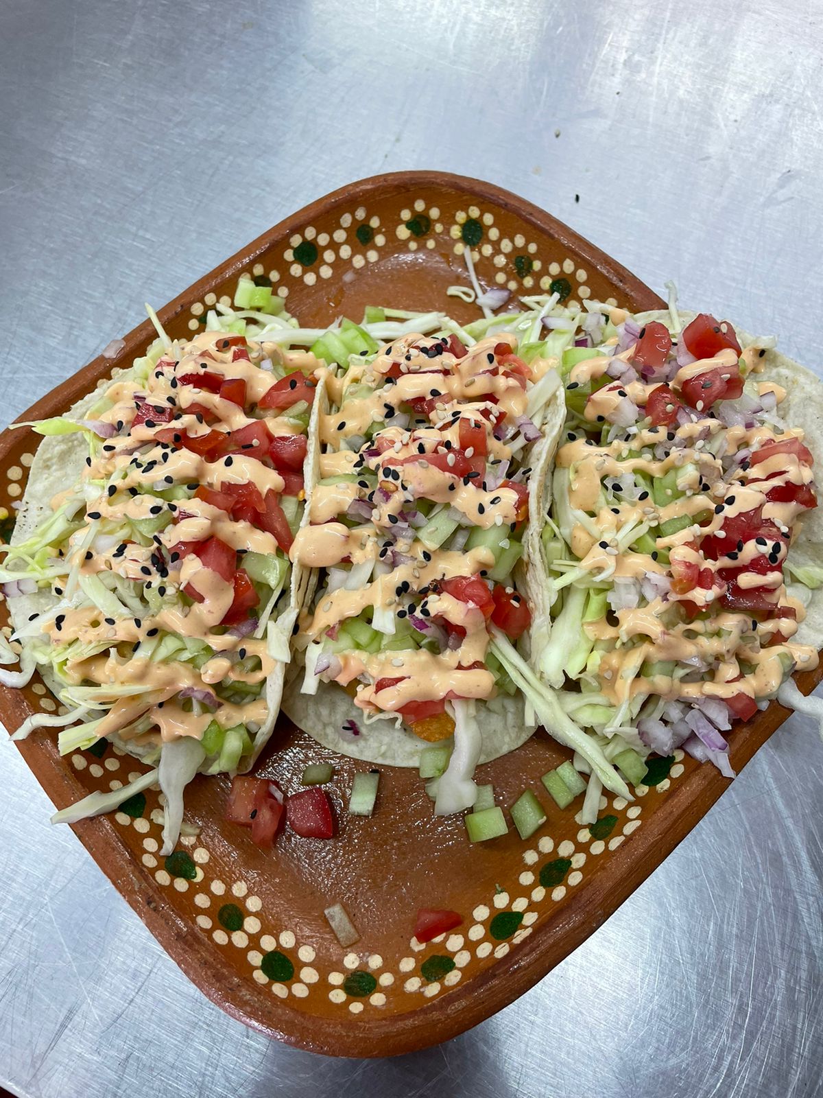 Deliciosa Orden de Tacos de Pescado. 3 Piezas.