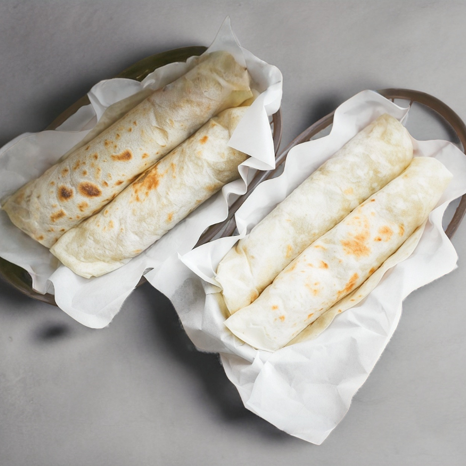 Deliciosa tortilla de harina, guiso, frijolitos y mayonesa.