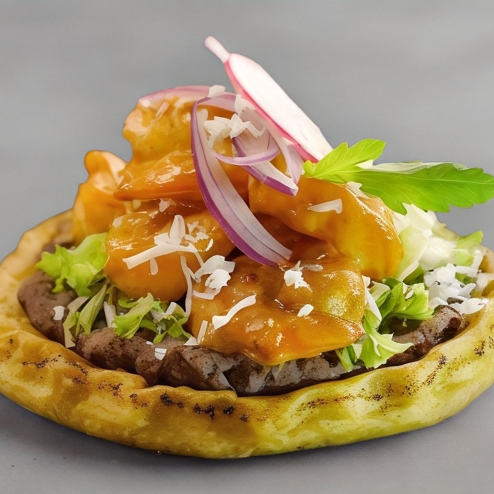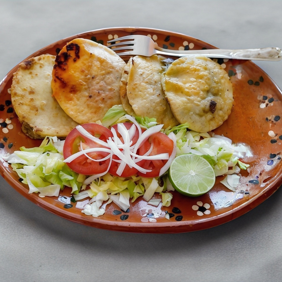 Delicioso gorditas doradas acompañadas de lechuga, tomate, cebolla, limones y salsa pilosísima.