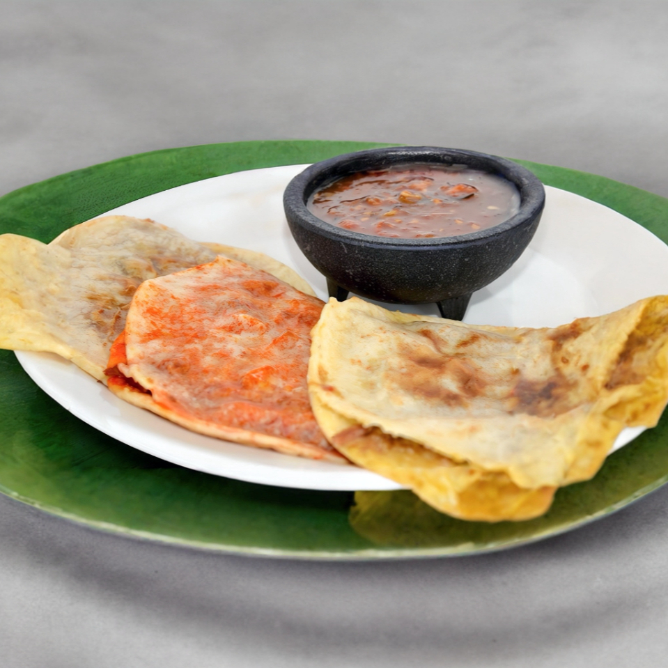 Quesadillas hechas a mano rellenas de tu guiso favorito.