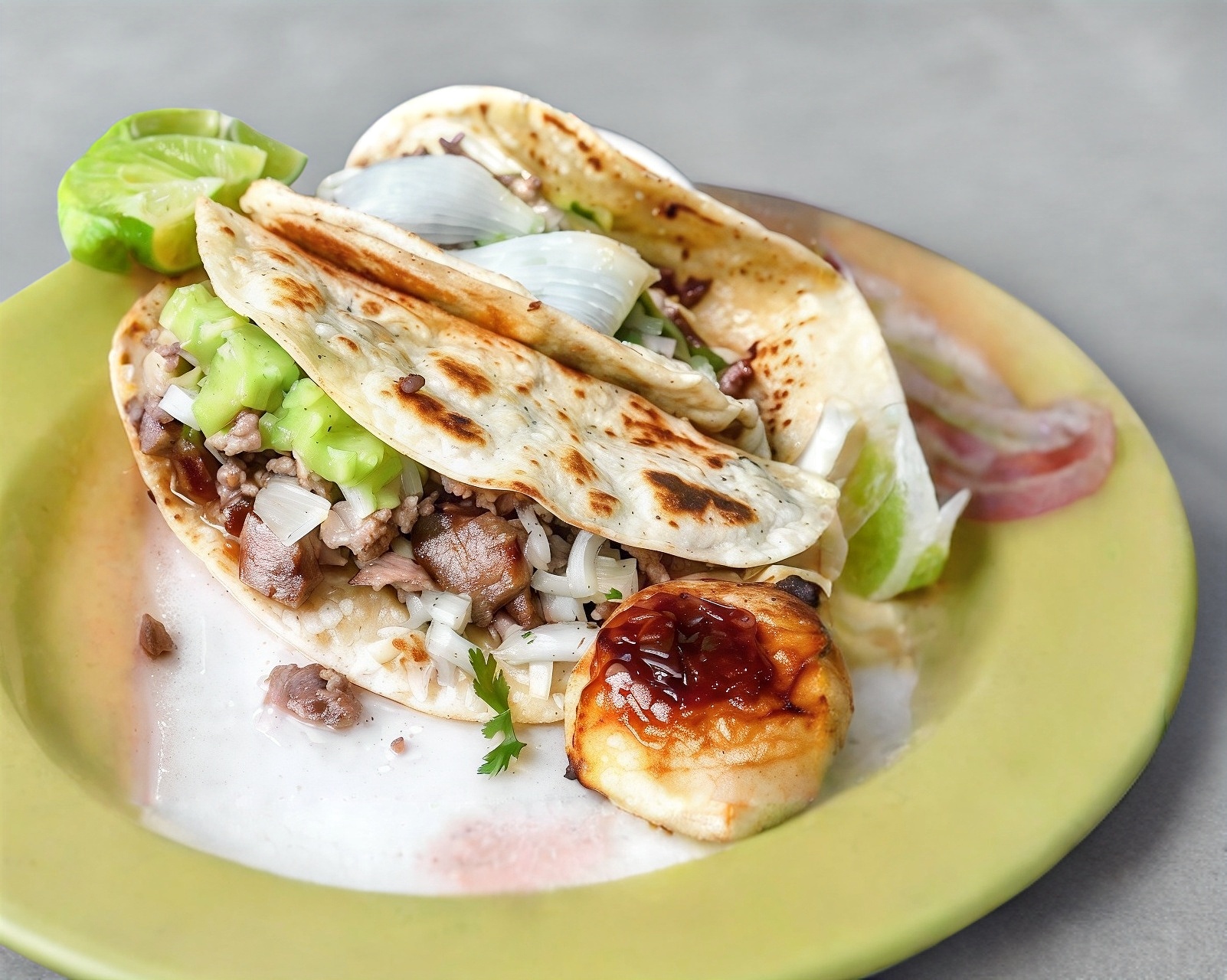 Delicioso Taco al pastor (1 pieza) con tortilla hecha a mano.