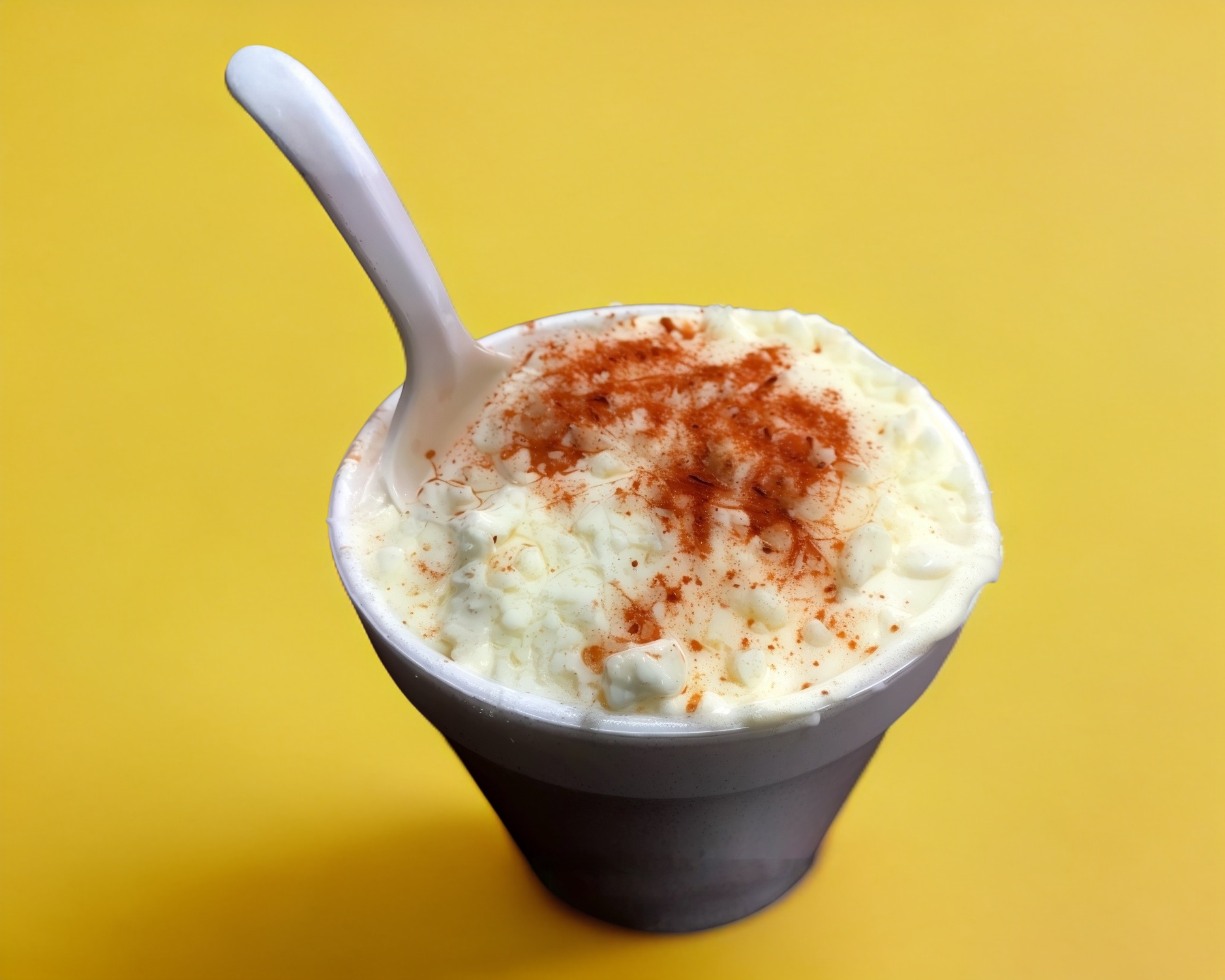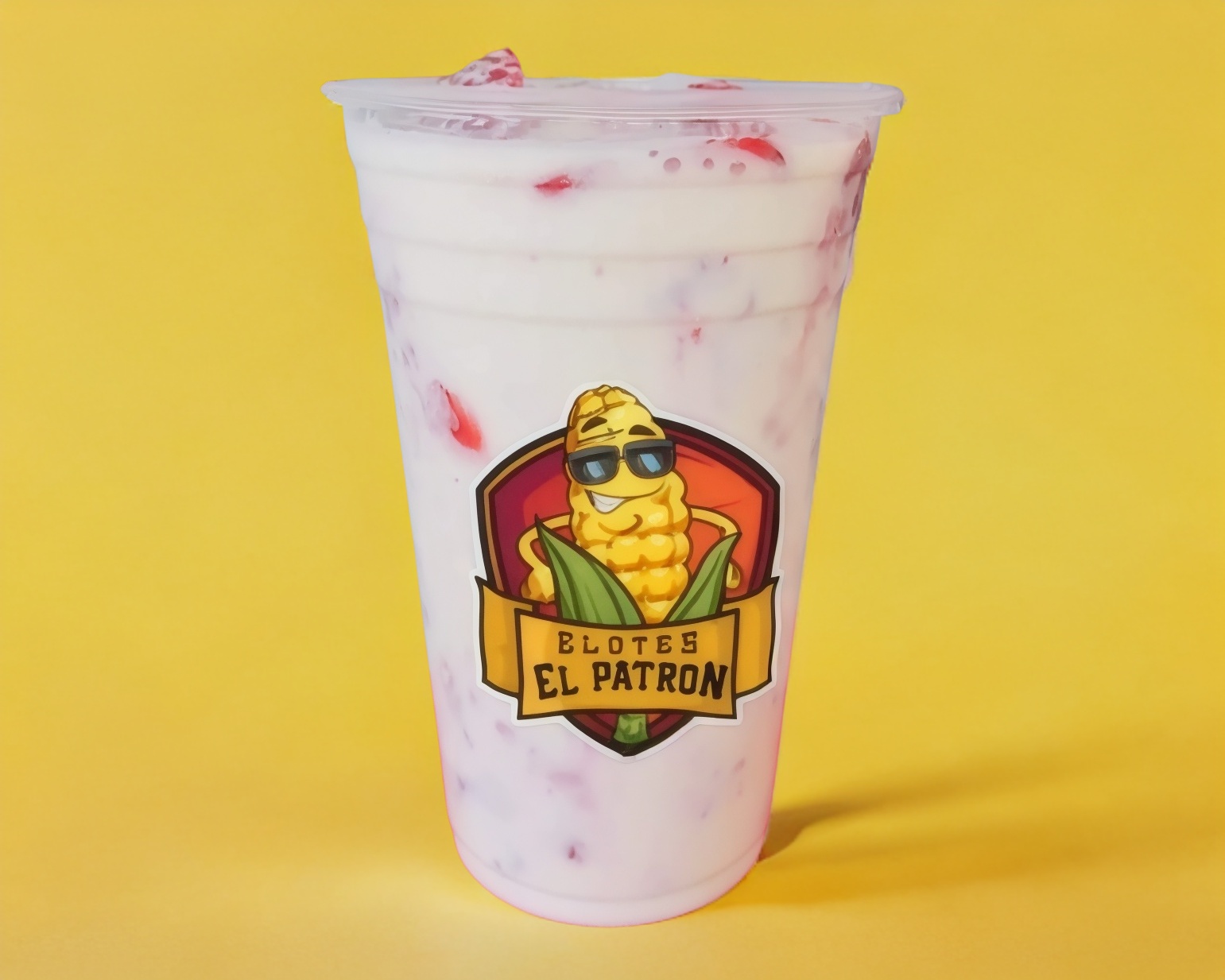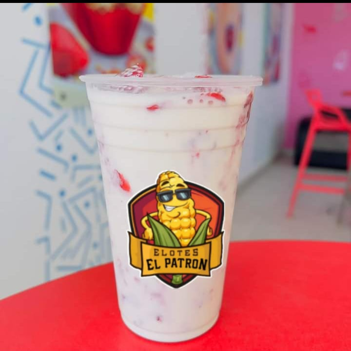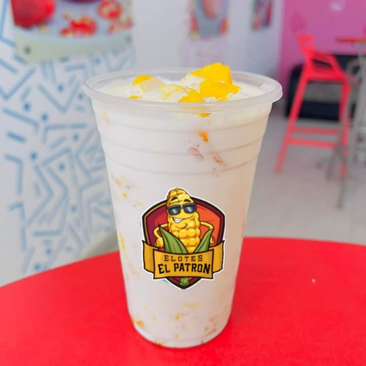 vaso de elote de medio litro contiene mantequilla,mayonesa,queso rayado y chile en polvo