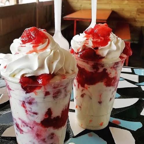 FRESA CONGELADA CON DELICIOSA CREMA DULCE DE LA CASA