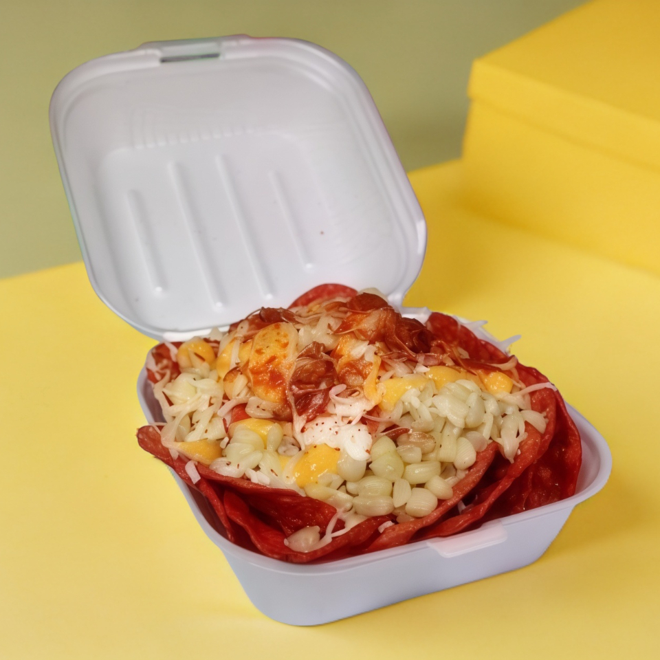 Lleva en tu contenedor de 32oz, mantequilla, crema, mayonesa, queso rayado, queso amarillo, chile en polvo el hostigo/papas de Sabritas en bolsa.