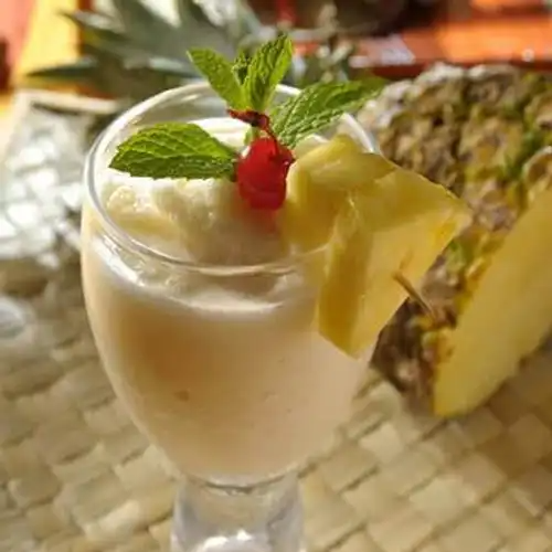 Refrescante bebida con el sabor tropical de la piña, mezclada con hielo y crema de coco.