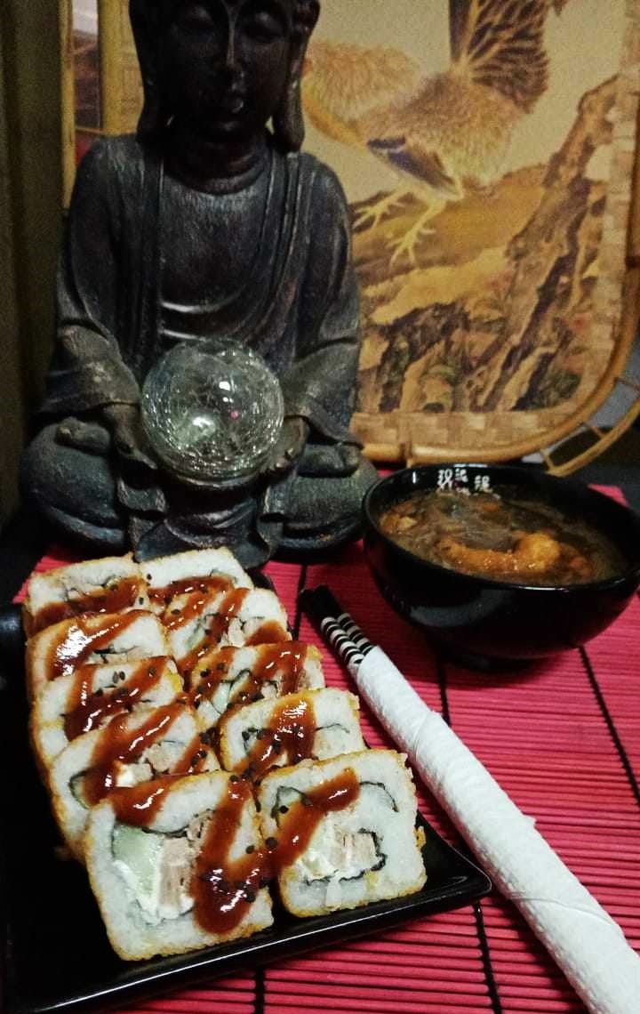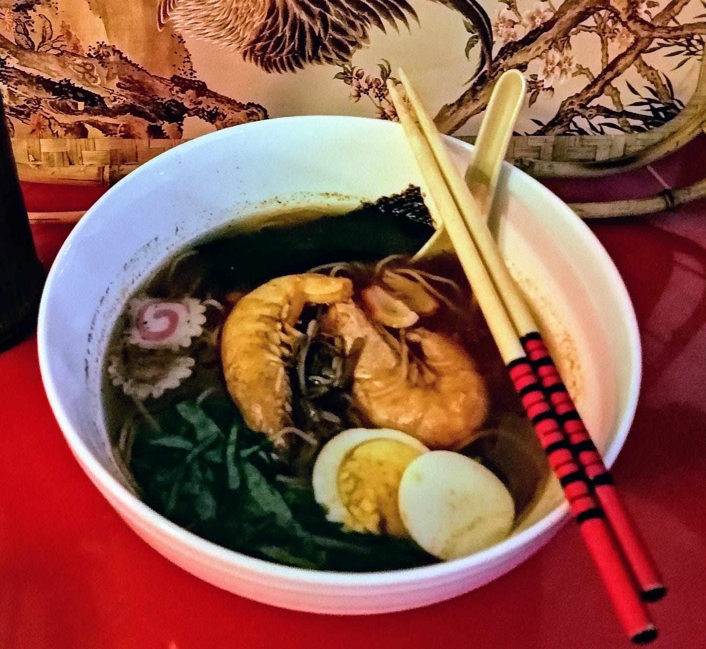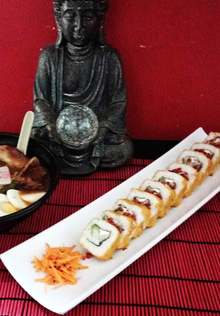 1 ramen, 1ramen camarón,4 rollos fritos:Surimi Tampico, mar y tierra, cerdo y tres quesos