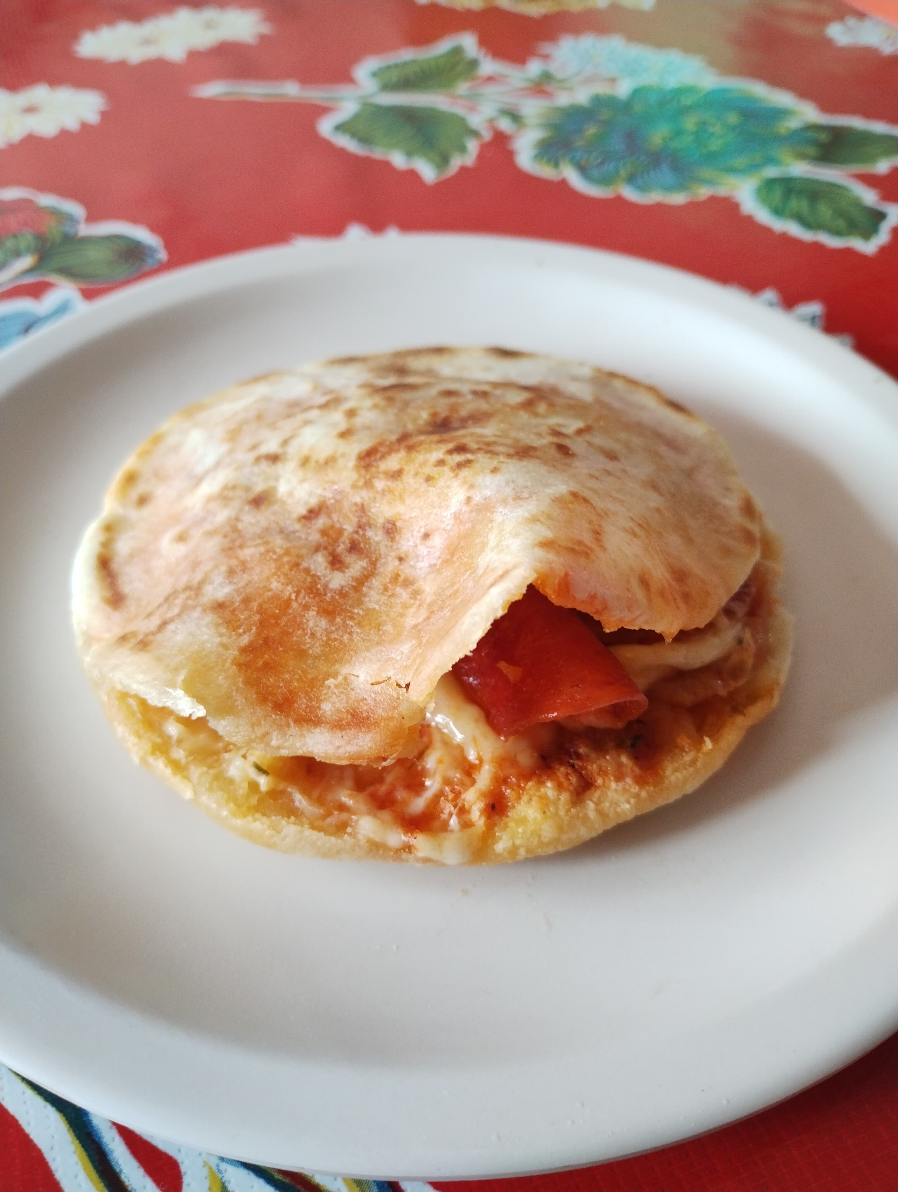 Deliciosa Gordita de Harina Rellena de Queso, con salsa de tomate y Pepperoni.