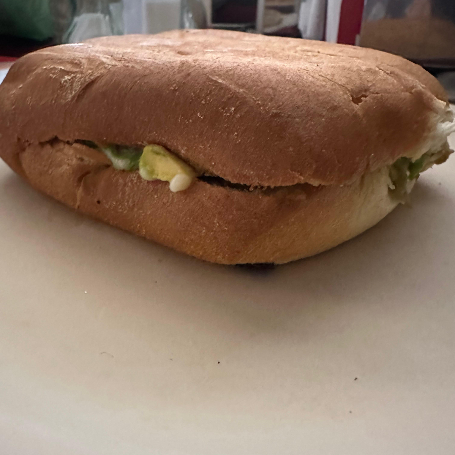 Pan artesanal con guiso de tu preferencia, tomate, aguacate, Chile en rajas y mayonesa
