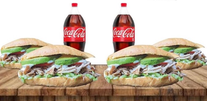 4 tortas de pierna + 2 refrescos coca cola 500ml